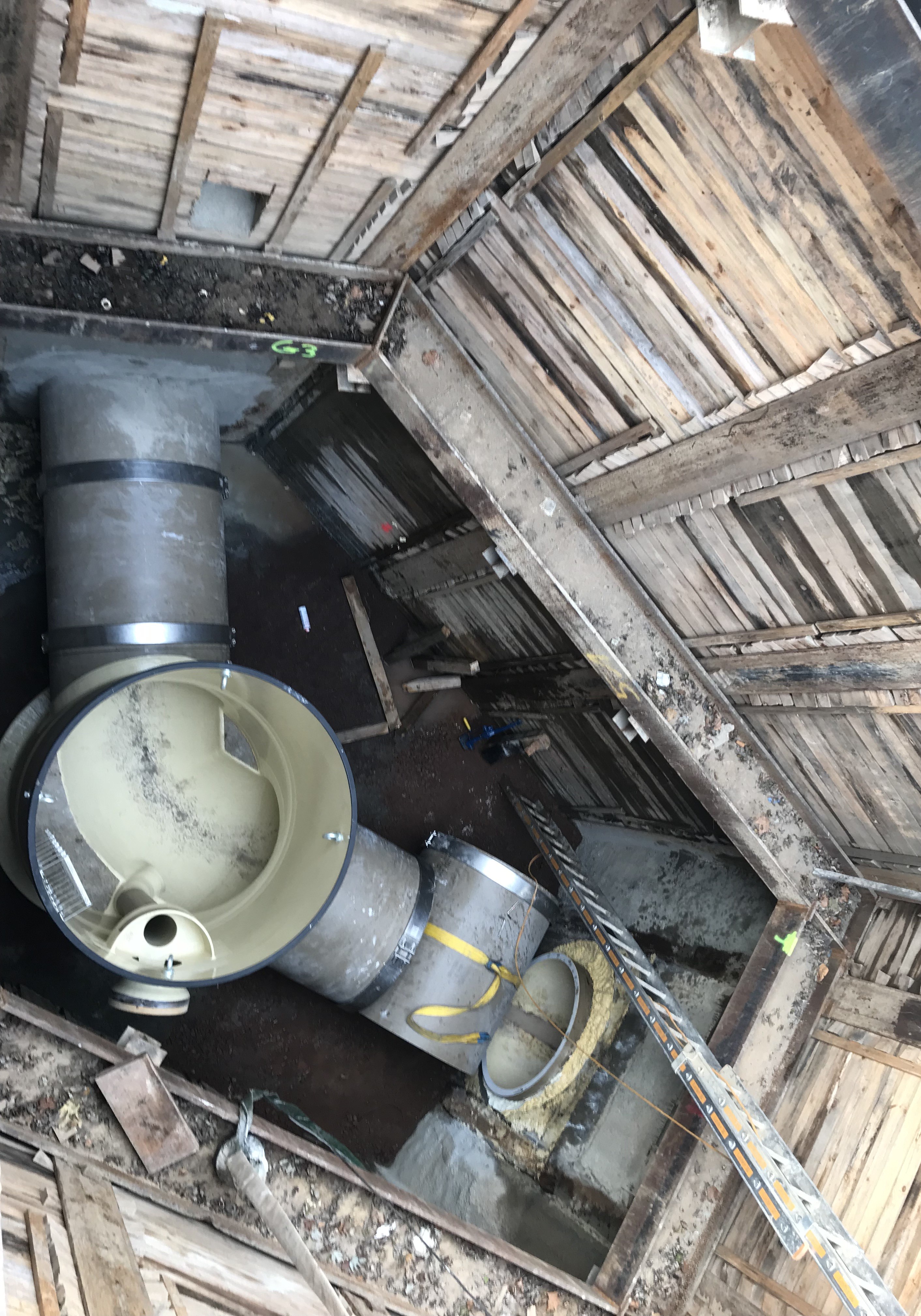 Realisierung von 530 m GFK Rohr Da 1280 in einer Tiefenlage bis zu 8,00 m im gesteuerten Rohrvortriebsver-fahren einschließlich Errichtung von 7