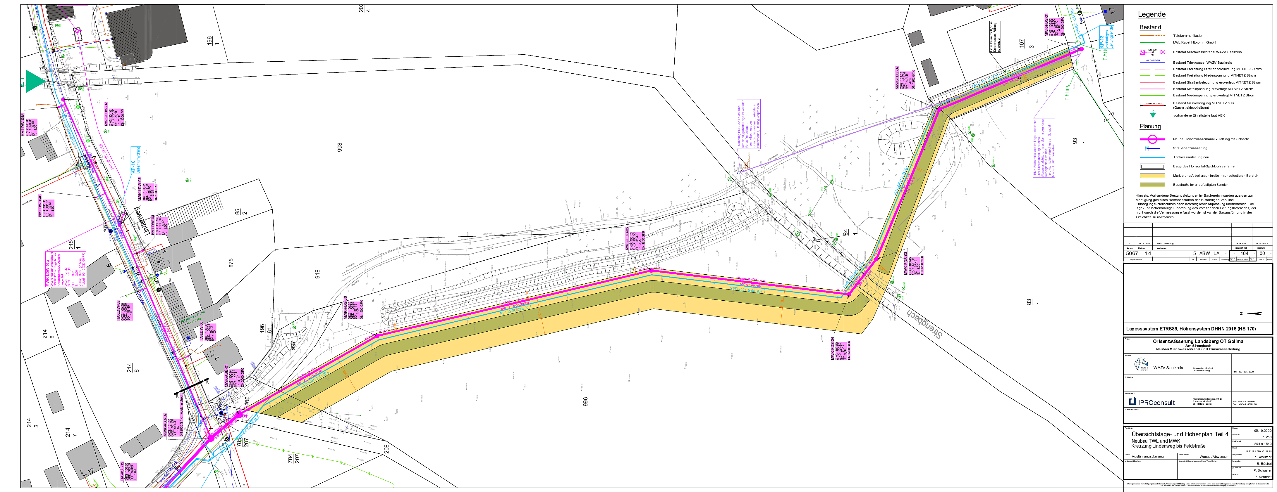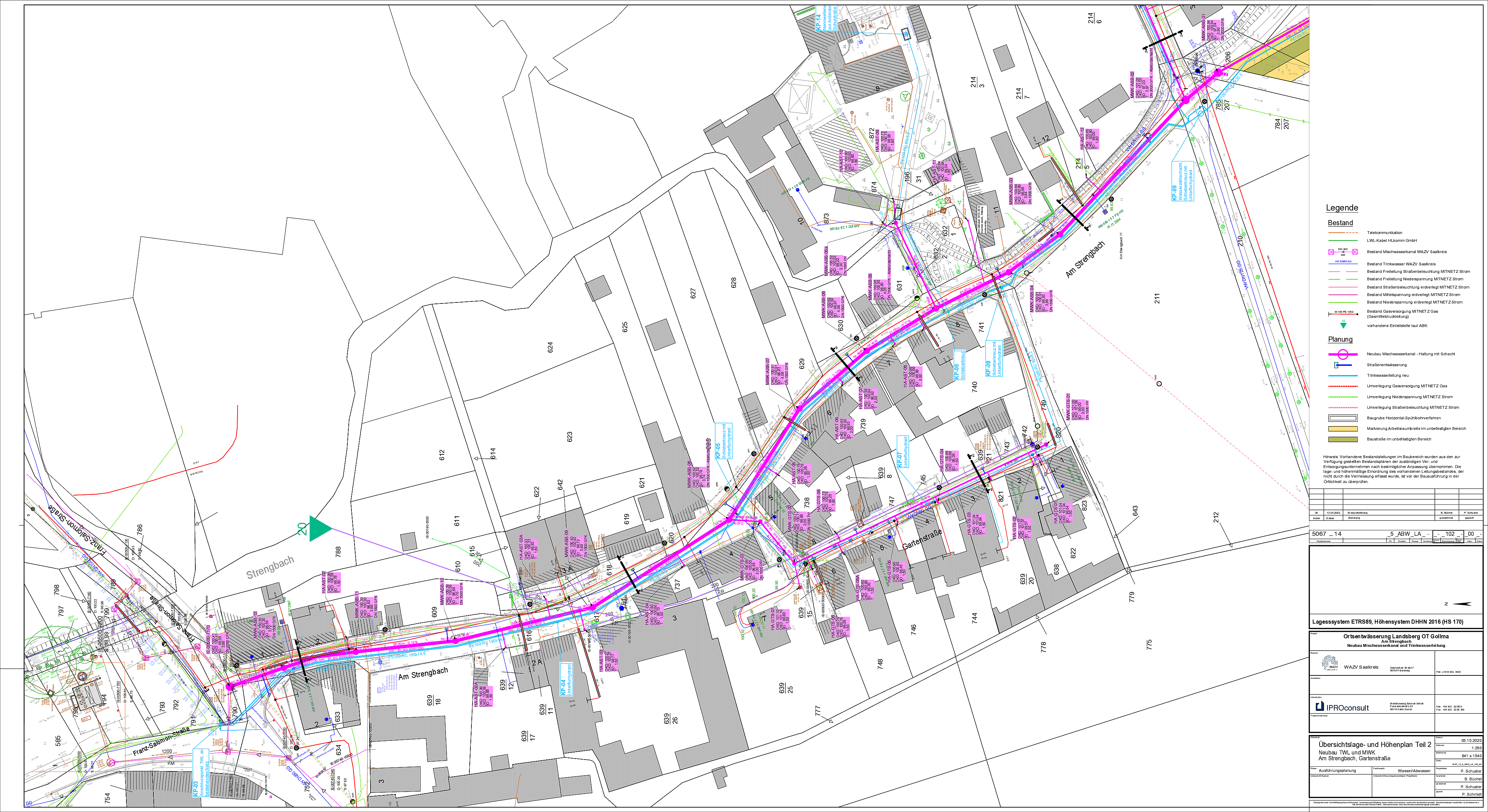 Die geplante Trinkwasserversorgung aus PE100 RC-Leitungen besitzt eine Gesamtlänge von ca. 1575 m in den Nennweiten von OD 40x3,7 (Hausan-schlüsse) bis OD 225x20,5 (Verbin-dungsnetz).