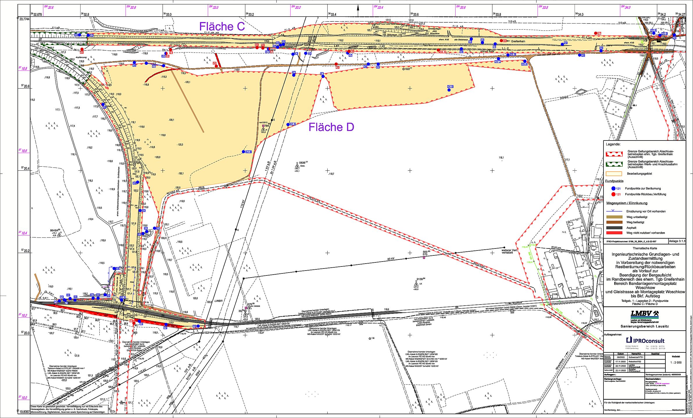 bergbaulichen Restanlagen und Ob-jekte in ihrem Bestand zu erfassen und mengenmäßig zu berechnen bzw. abzuschätzen. Weiterhin ist ein Ab-gleich mit einer im Jahr 2015 durch IPROconsult erfolgten Grundlagen- und Zustandsermittlung hinsichtlich des Rückbaues und der Beräumung bergbaulicher Anlagen im Bereich Werk- und Anschlussbahnen durch-zuführen.