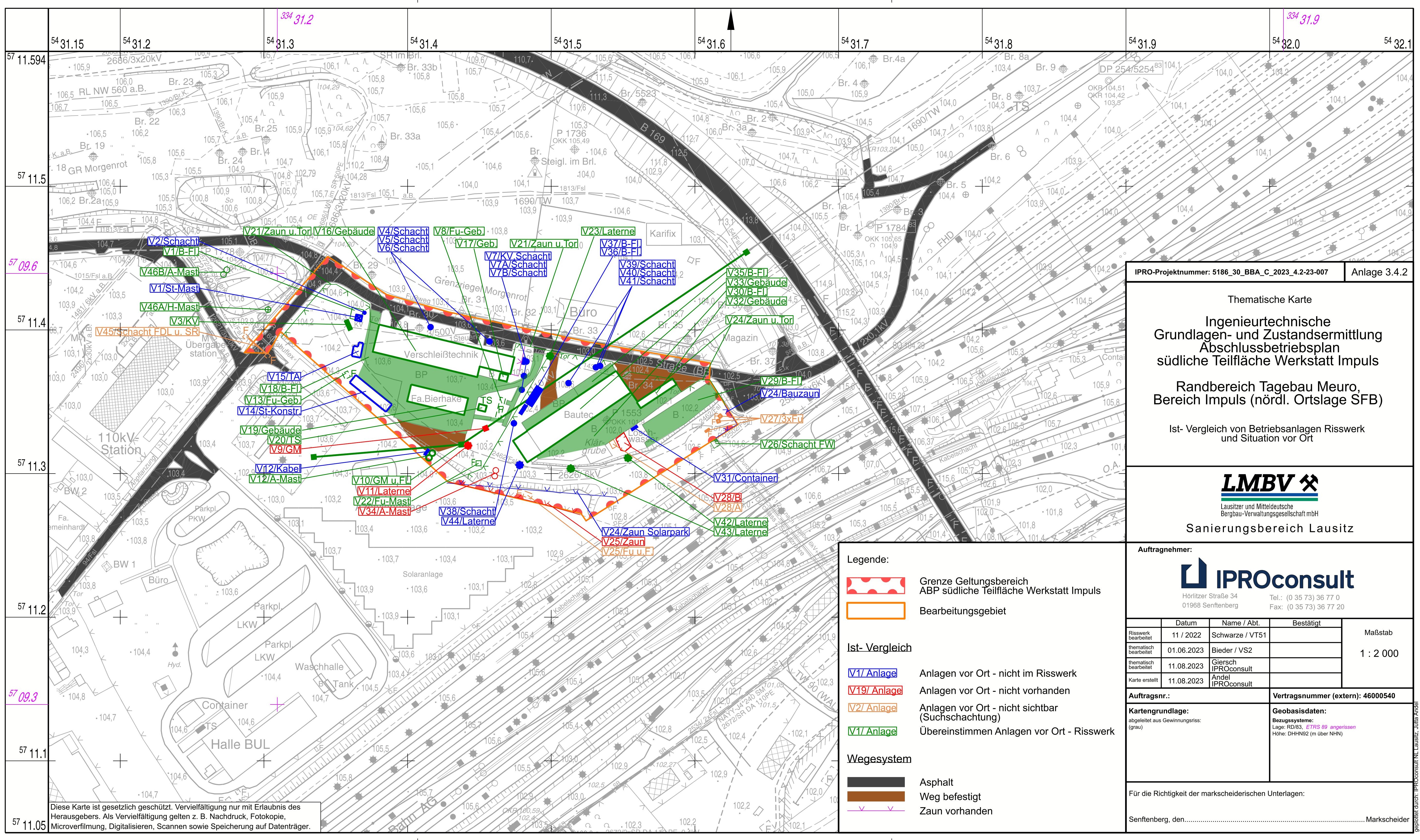 Die Grundlagen- und Zustandsermitt-lung gilt als Vorleistung der Restbe-räumung verbliebener Anlagen und Objekte, der Beantragung berg- und wasserrechtlicher Genehmigungen zur Verwahrung von Brunnen und Grundwassermessstellen im Hinblick auf eine Beendigung der Bergauf-sicht. Die südliche Teilfläche des ehemaligen Werkstattkomplex Impuls ist in Nutzung Dritter.