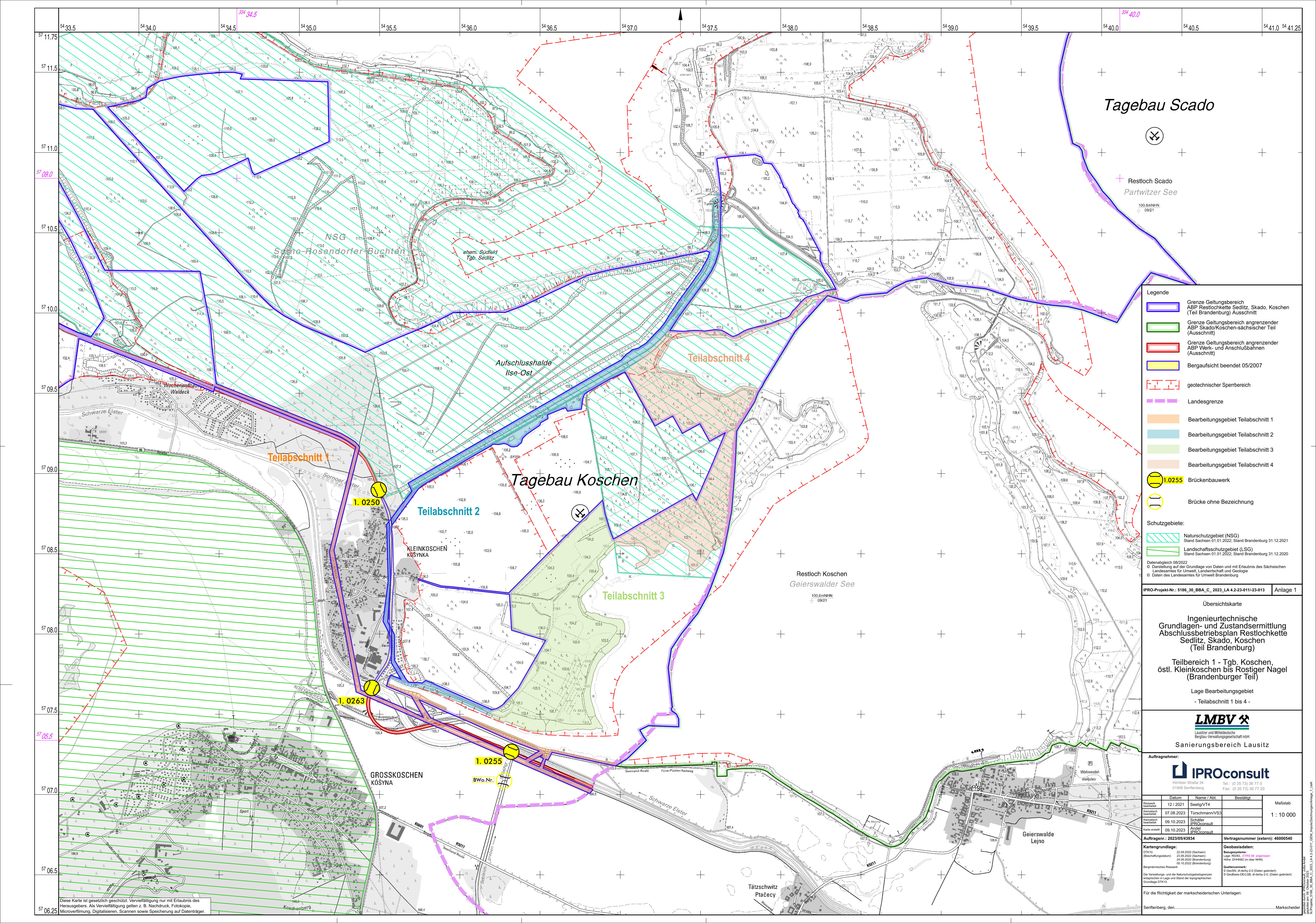 Der festgestellte Umfang zu verbliebe-nen Sanierungsleistungen betrifft den Rückbau einer ehemaligen Kohlebahn-brücke, von Mastfundamenten einer Freileitung, Schachtanlagen der Tage-bauentwässerung, Beräumung, großer Haufwerke mit bergbaulichen Abfällen sowie die Verwahrung/Nachverwah-rung von Brunnen und Grundwasser-messstellen. Zu verbliebenen ehemali-gen Tagebaustraßen ist eine Prüfung betreffs einer weiteren Nutzung oder Rückbau erforderlich. Festgestellte Tagesbrüche und Geländesenken sind zu sichern und zu beseitigen. Es sind insgesamt 1.410 t Beton, 8 t Eisen, 18 t Gemische Beton/Ziegel und 8730 t Boden und Steine u. a. zu beräumen. Von 187 im aktuellen bergm. Risswerk dargestellten Objekten und Anlagen sind 24 bereits vor Ort beräumt. 59 Anlagen befinden sich zusätzlich auf den Flächen, über deren Verbleib bzw. Beräumung zu entscheiden ist. Der Flächen-Istzustand zur Erreichung von Wiedernutzbarmachungszielen der forst-, landwirtschaftlichen und sonsti-gen Nutzung ist an 129 ausgewählten Standorten dokumentiert worden. Im Ergebnis sind Schutzzäune für An-pflanzungen und Wegbefestigungen zu beräumen.