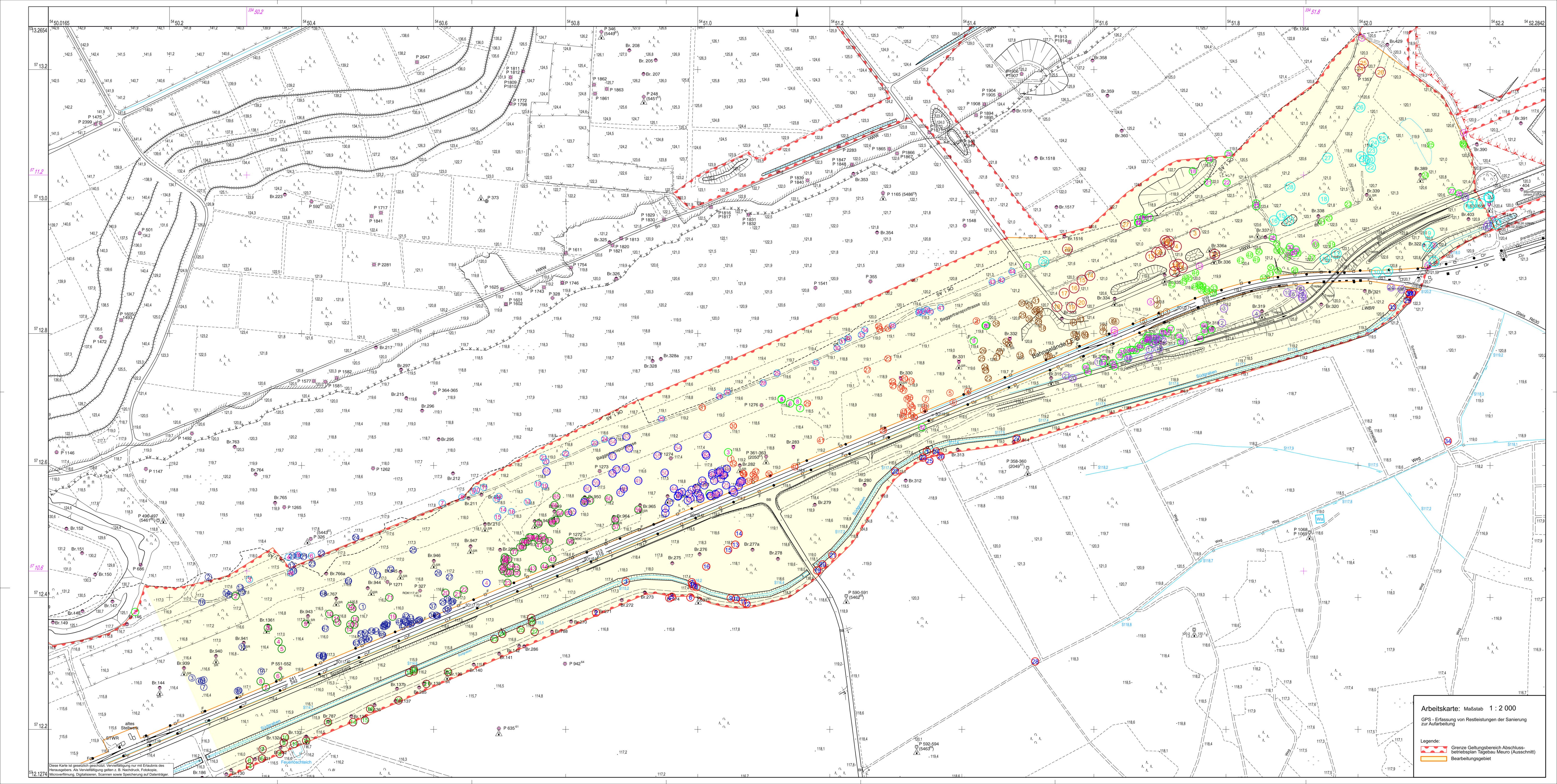 Die Dokumentation und Erstellung eines groben Mengengerüstes sind aktuell Gegenstand der Bearbei-tungen. Alle Ergebnisse werden ab-schließend in thematischen Karten und Übersichtsplänen erfasst und dar-gestellt