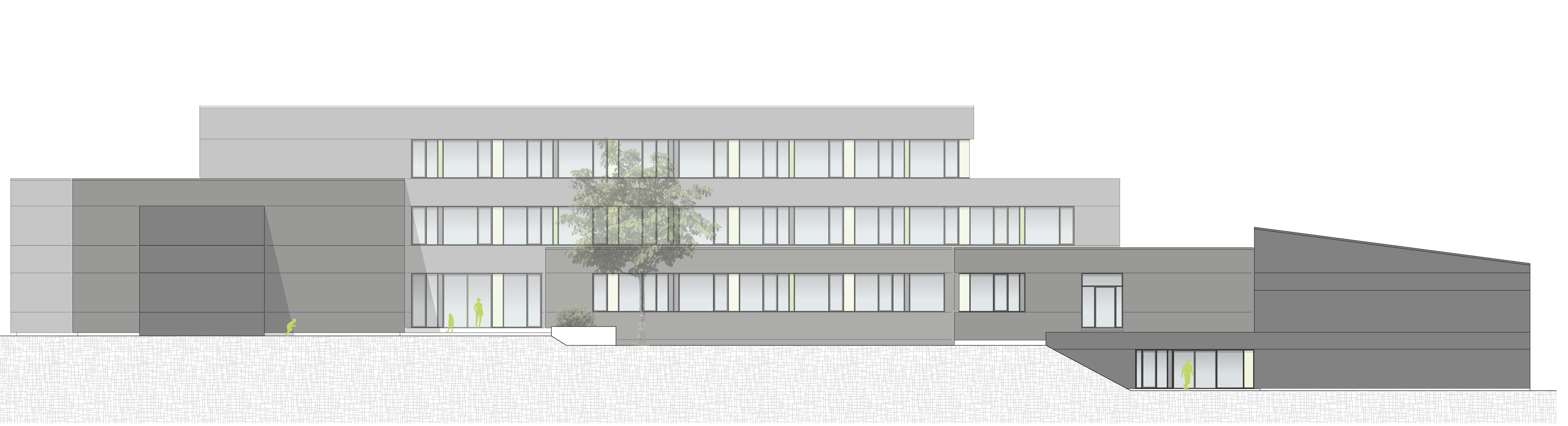 Die Sanierung soll innerhalb von drei Jahren bei laufendem Betrieb und in drei Bauabschnitten erfolgen. Währ-end der Bauzeit sollen die bestehen-den Klassencontainer den kontinuier-lichen Unterricht sichern.