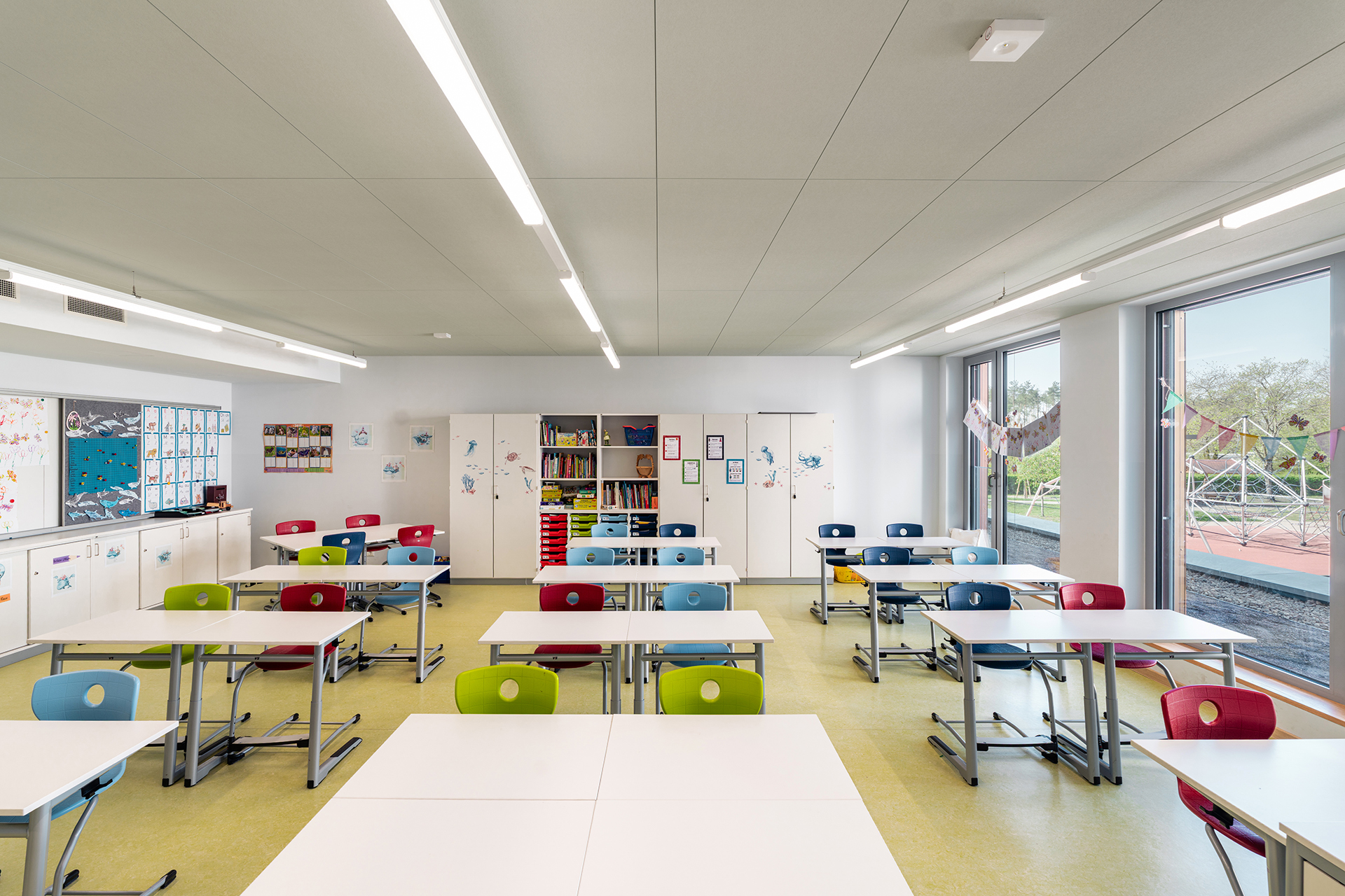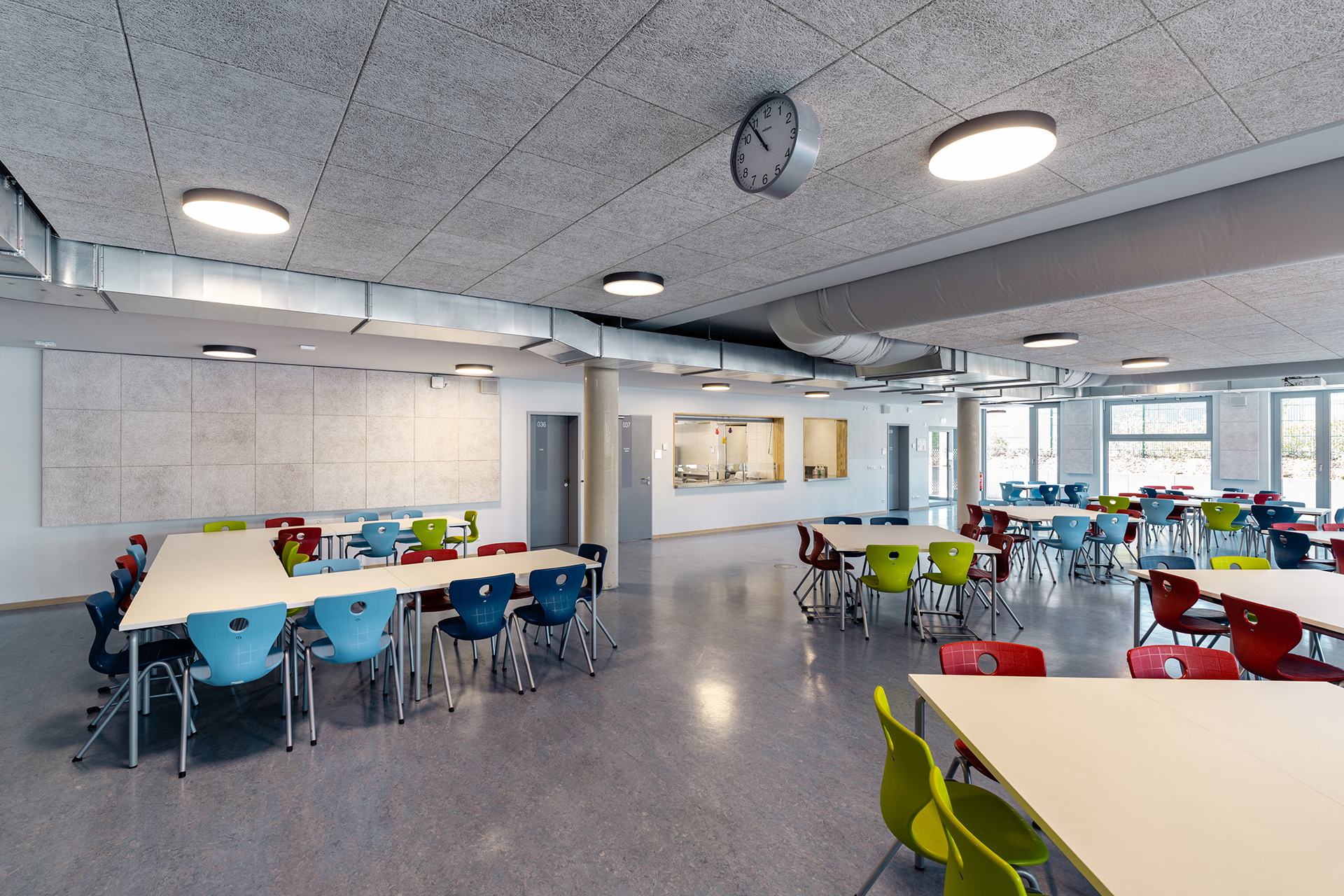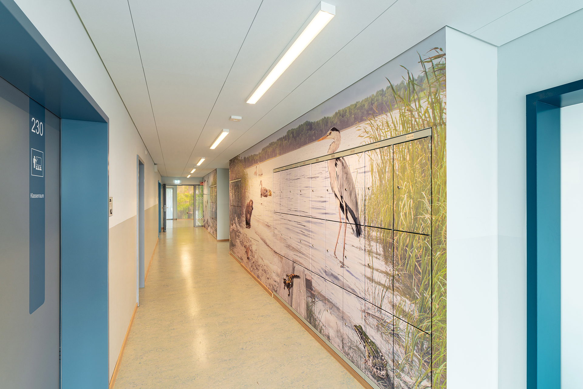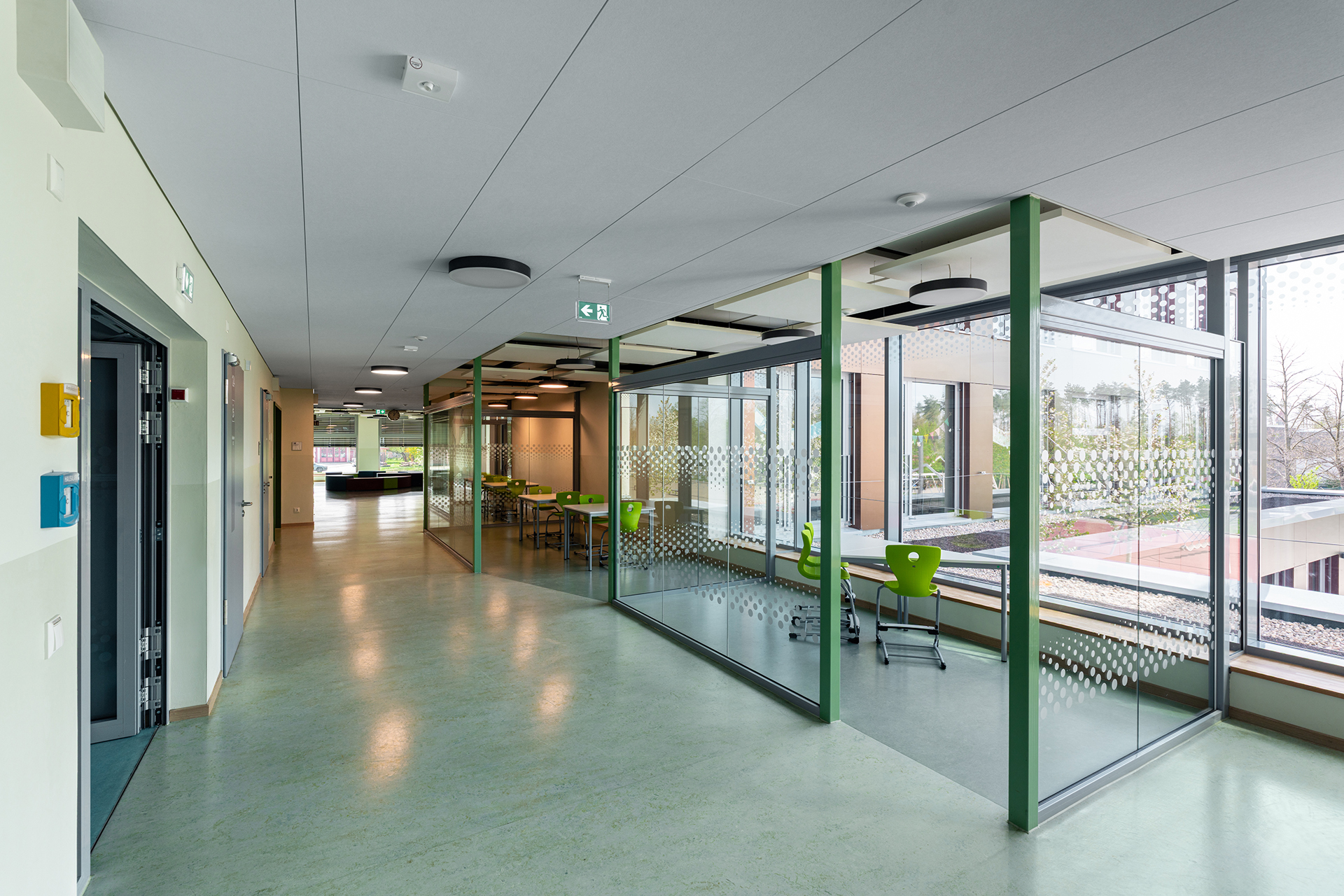 Für die Lehrer und Schüler werden großzügige Räumlichkeiten vorgehal-ten und um den Aufenthalt so an-genehm wie möglich zu gestalten, wurden kleine Lounge-Bereiche in den Etagen integriert und Lernzonen für Projektarbeiten oder Hausaufga-benzeiten in jeder Etage geschaffen.