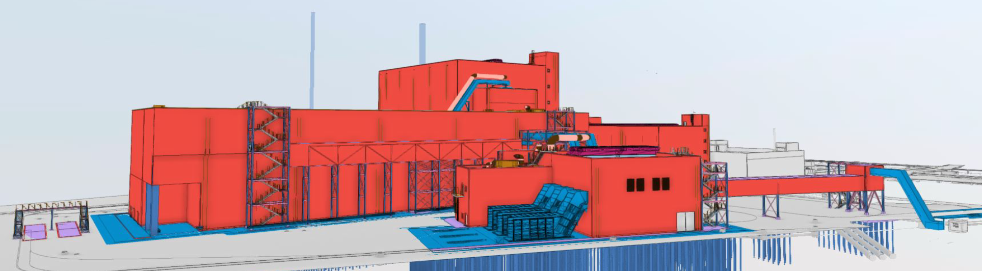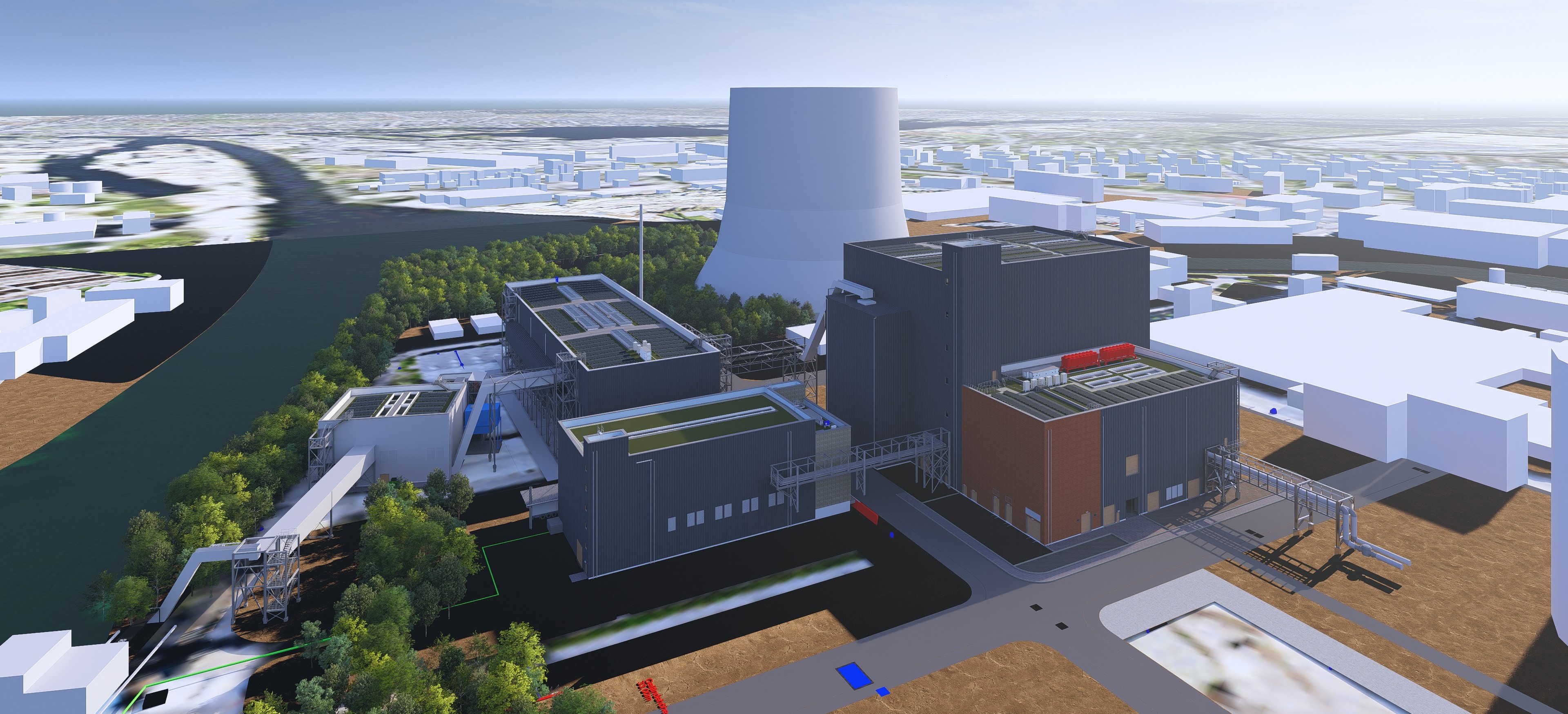 Das Bauvorhaben beinhaltet das Kes-selhaus, das Maschinenhaus sowie verschiedene Anlagen zur Brennstoff-anlieferung und -lagerung. Besondere Herausforderungen ergeben sich durch die Integration hochmoderner