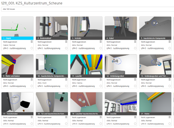 Die QS erfolgte zweistufig: (1) modell-technische Prüfungen auf Geometrie- und Koordinationsqualität und (2) da-ten-/anforderungsbasierte Prüfungen gegen definierte Informationslieferob-jekte. Für die modelltechnische QS setzten wir BIMcollab ZOOM ein; Kollisionen und Mängel wurden in Design-Reviews identifiziert, als BCF-Issues strukturiert dokumentiert, prio-risiert und mit Verantwortlichkeiten sowie Fristen versehen. Über die Projektlaufzeit wurden so ca. 420 Kol-