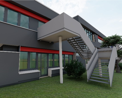 Die Generalsanierung des 17.500 m² großen Gebäudekomplexes besteh-end aus Schulgebäude, Dreifeld-Sporthalle und Schwimmhalle bein-haltet die energetische Sanierung, den Rückbau aller Bauteile bis auf den Rohbauzustand, die brandschutz-
