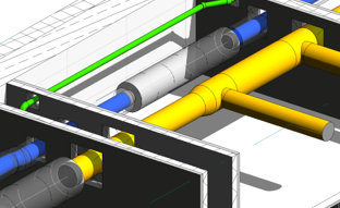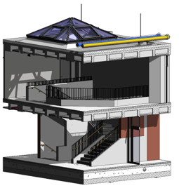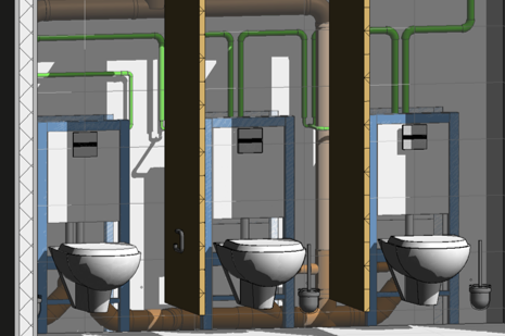Die Herausforderung bei Sanierungs-projekten besteht in der Modellierung des Bestandes. Häufig existieren keine oder nur wenig belastbare Grundlagen für die Planung. Digitale Daten sind in den meisten Fällen ebenfalls nicht vorhanden. Daher wurde in diesem Projekt zunächst der Bestand anhand analoger Pläne modelliert, um daraufhin den Bedarf an Abbruch und Neubau zu defi-nieren. Dazu wurden alle Modellele-mente einer Phase zugeordnet, um daraus Abbruch- und Umbaupläne zu generieren. Genutzt wurden diese Phasen auch, um die mitzuverarbei-tende Bausubstanz zu ermitteln. Für die interne Abstimmung und Bemus-terung wurde das Projekt visualisiert und für Virtual Reality aufbereitet.