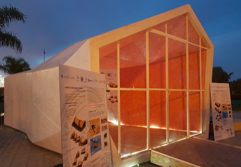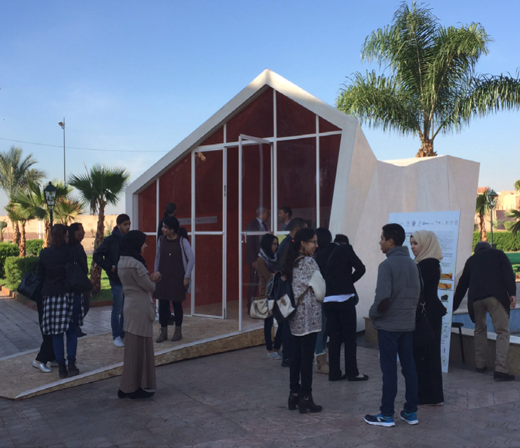 As part of the continuation of the German-Moroccan project "Know- how transfer relative to design of climate-adapted buildings in urban areas", the national academy of archi-tecture of Marrakesh (ENAM) wanted to take part in the COP22 Marrakesh as an active center of sustainability regarding design of climate-adapted buildings.