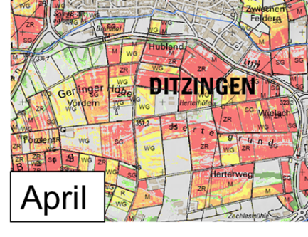 Le projet pilote s'inscrit dans le cadre de la gestion des risques liés aux fortes pluies déjà mise en œuvre dans le Bade-Wurtemberg, qui prévoit l’élaboration de cartes communales des risques liés aux fortes pluies, fournissant notamment des informa-tions sur les voies et vitesses de ruissellement, et les hauteurs de retenue du ruissellement de surface.