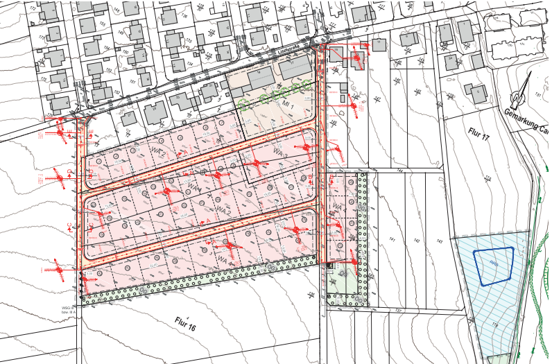 Auf dieser ehemaligen Acker-fläche sollen im Wesentlichen Einfamilienwohnhäuser entstehen, daneben wird es ein kleineres Areal