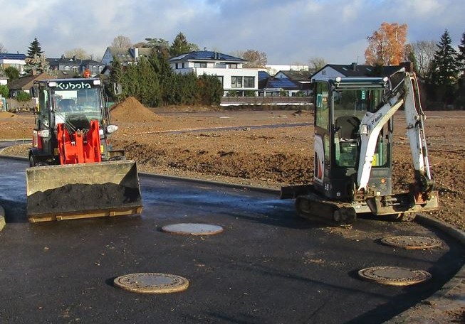 Für das Neubaugebiet „Alter Sport-platz“ ist bezüglich der Entwässerung ein Trennsystem mit GFK-Kombina-tionsschächten vorgesehen. Ebenso wurde die Trinkwasserversorgung für den Betreiber Rheingauwasser ge-