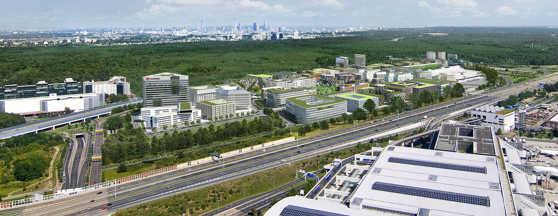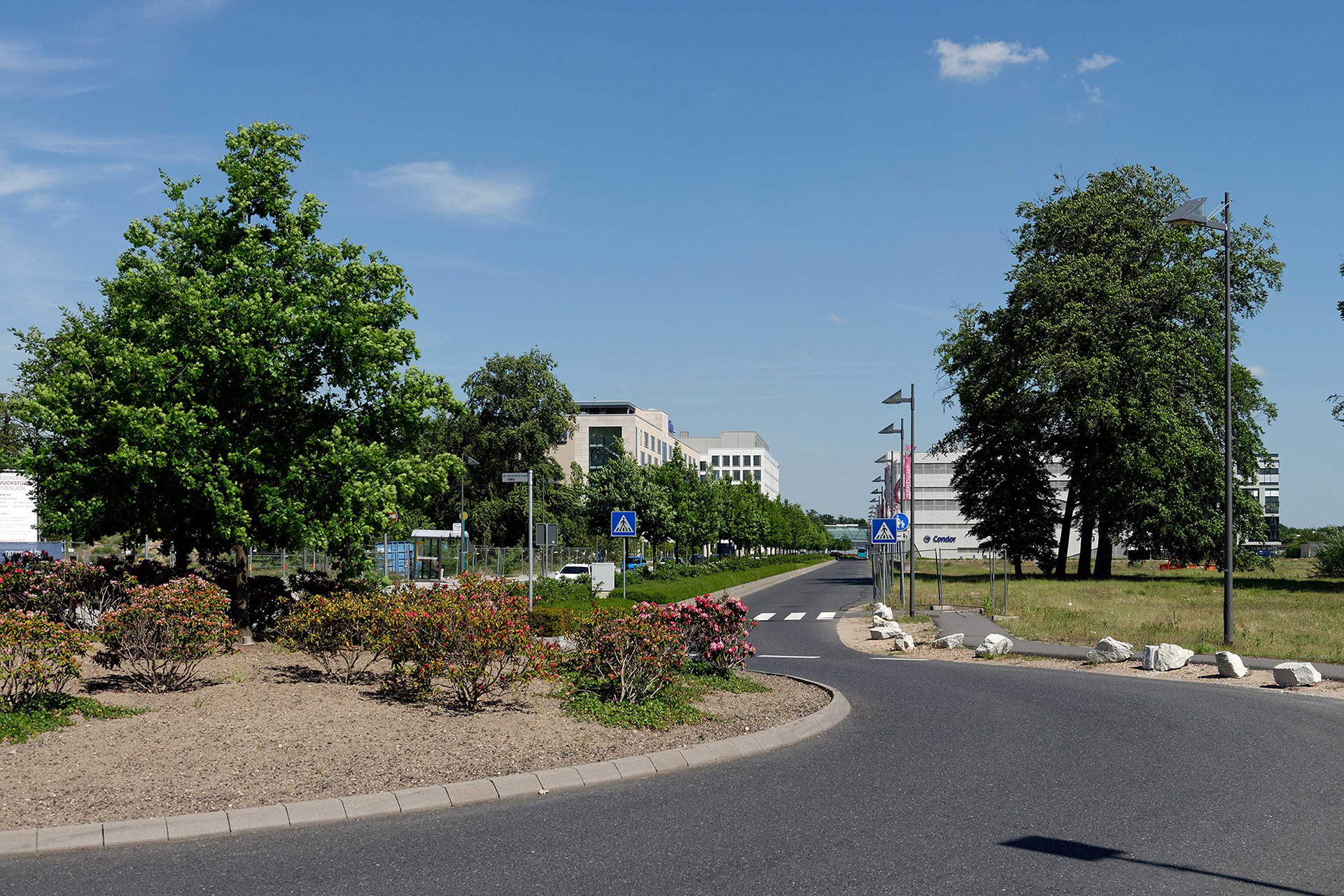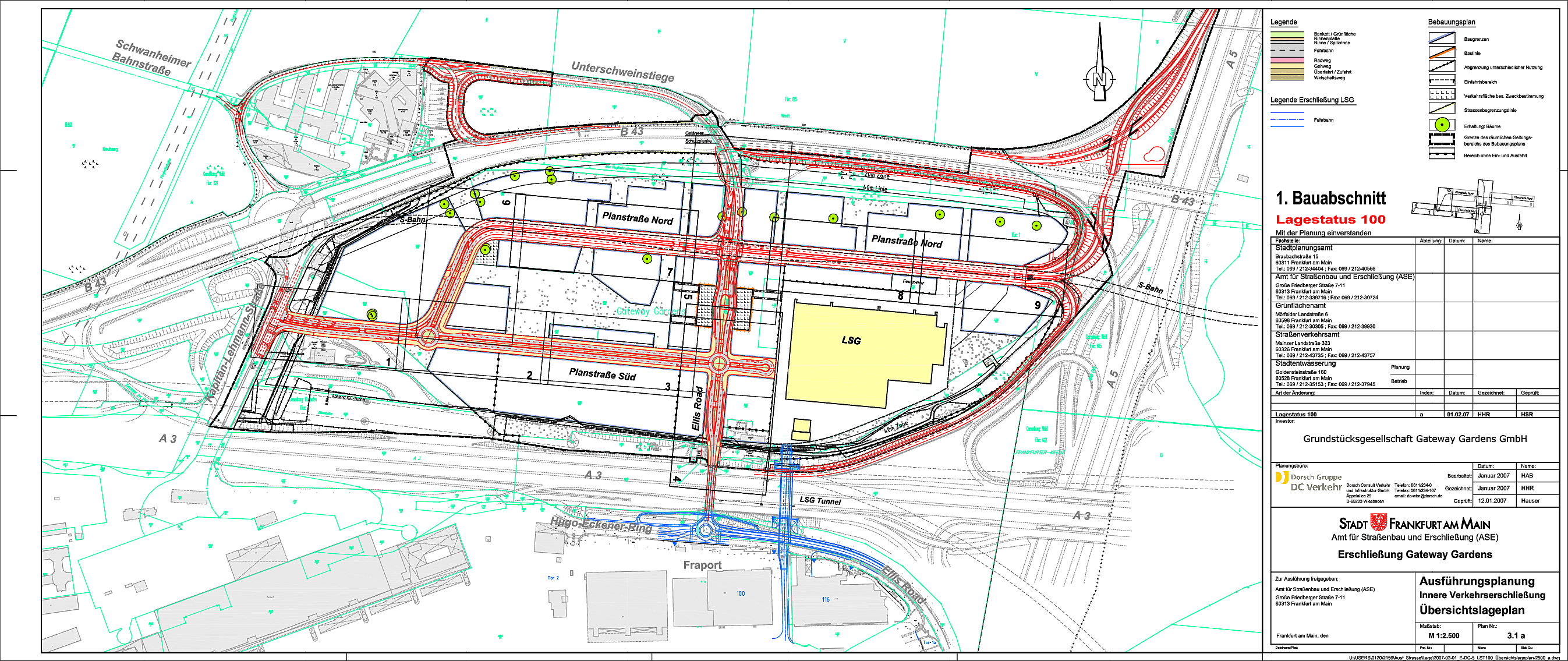 - Anlieferungsstraßen sowie äußere Erschließung mit Anschluss an das städtische Straßennetz, der B43 und der BAB A5