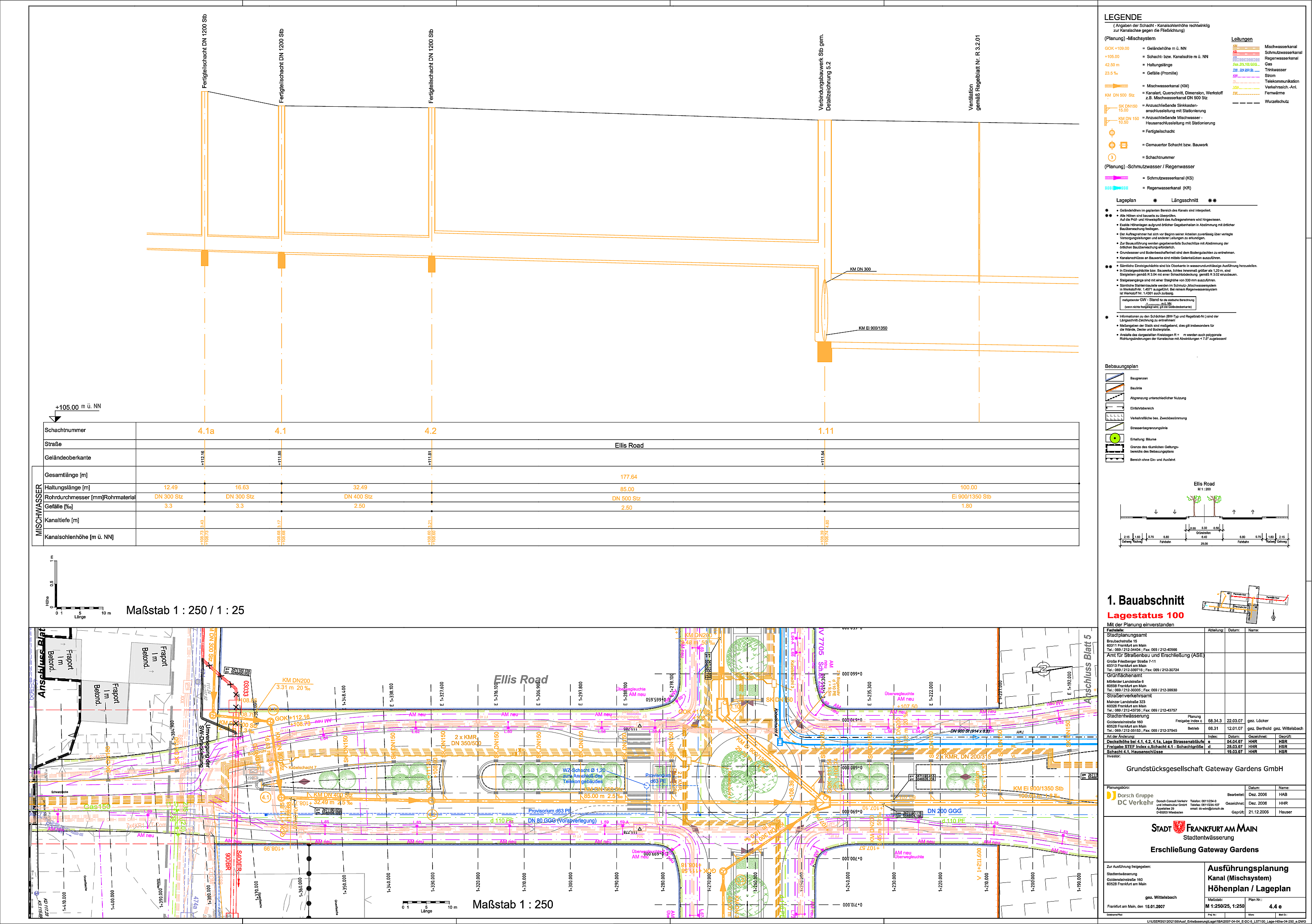 - ca. 2.300 m Straßen (2 Fahrbahnen, 4 Fahrstreifen), ca. 30.000 m² Fläche