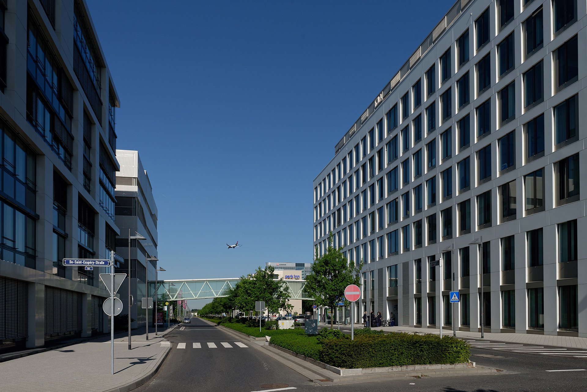 Das Gelände Gateway Gardens liegt nördlich des Flughafens Frankfurt am Main und ist allseits von Straßen um-schlossen. Im Norden liegt die B43, im Osten die A5, im Süden die A3 und im Westen die Kapitän-Lehmann-Straße.