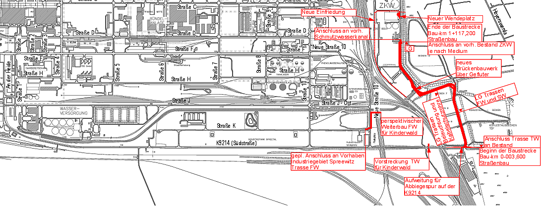 Die geplanten Maßnahmen dienen der Erschließung weiterer Grundstücke und damit zur Absicherung der Ge-werbeansiedlung im südöstlichen Be-reich des ISP und anschließend auch im Außenbereich des ISP bis zur Süd-straße.