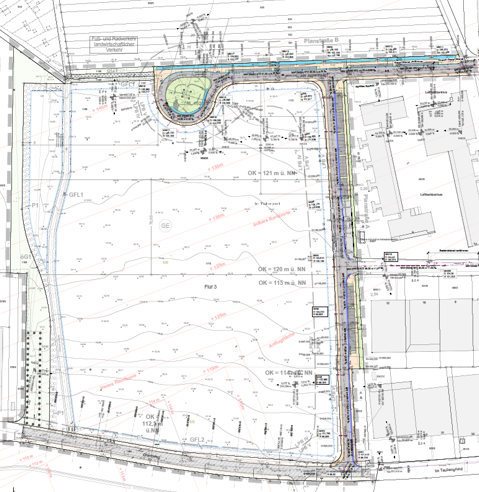 - Entwässerung im Baugebiet sowie Änderung der Fließrichtung Entwässerungskanal aus GEP