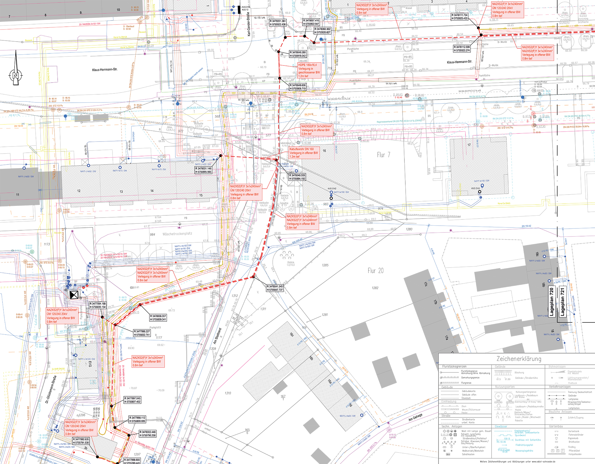 Die Stadt Guben plante die Qualifi-zierung der Medieninfrastruktur im Gewerbegebiet Deulowitz auf Grund von konkreten Ansiedlungsvorhaben. Dazu sollte in der Klaus-Herrmann-Straße ein Mittelspannungskabel aus-gewechselt werden. Der Netzbetrei-ber Energieversorgung Guben GmbH wurde bei der Planung und Ausführ-ung der Leistungen mit einbezogen. Die hier beschriebenen Leistungen beinhalten den Tiefbauteil. Die elek-trotechnische Ausrüstung ist nicht Bestandteil der Planung.