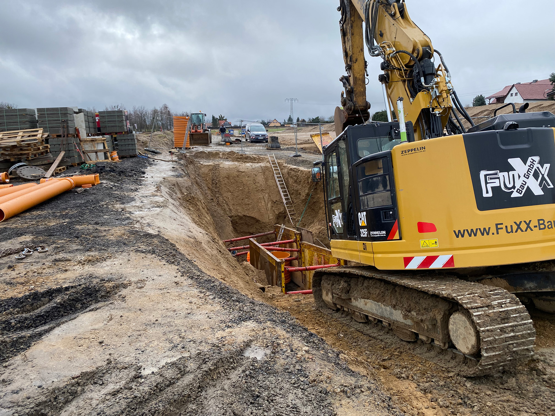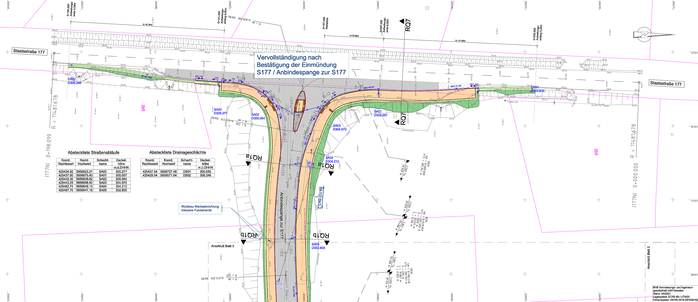 Die Arbeiten umfassten die Anlage und den Ausbau der erforderlichen Verkehrsflächen, Leitungen sowie er-gänzender Infrastruktur. Dabei wur-den alle Ausführungen entsprechend den genehmigten Planunterlagen und den geltenden technischen Regelwer-ken umgesetzt. Die Straßenflächen wurden in einer belastungsgerechten Bauweise hergestellt und mit den not-wendigen Fahrbahnrändern sowie Ne-benanlagen ergänzt. Für die Entwäs-serung entstand ein leistungsfähiges System aus Regenwasserleitungen und Schächten, das eine ordnungsge-mäße Ableitung auch bei erhöhtem Niederschlagsaufkommen gewähr-leistet. Die Schmutzwasserleitungen wurden in das vorhandene Netz in-tegriert.