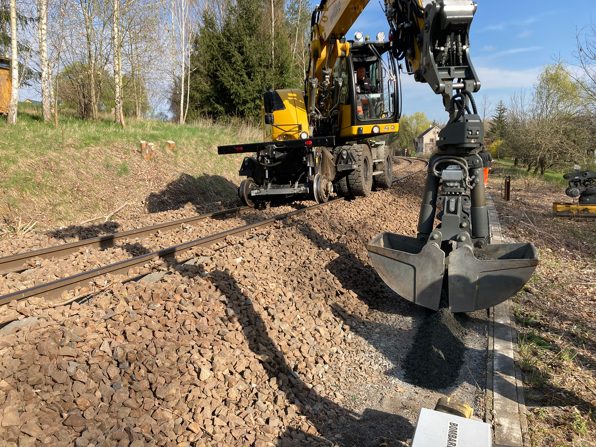 sprungszustandes erforderlich. Sämt-liche Arbeiten erfolgten unter Beach-tung der technischen Regelwerke für nichtbundeseigene Eisenbahnen so-wie der einschlägigen Sicherheits- und Umweltschutzauflagen.