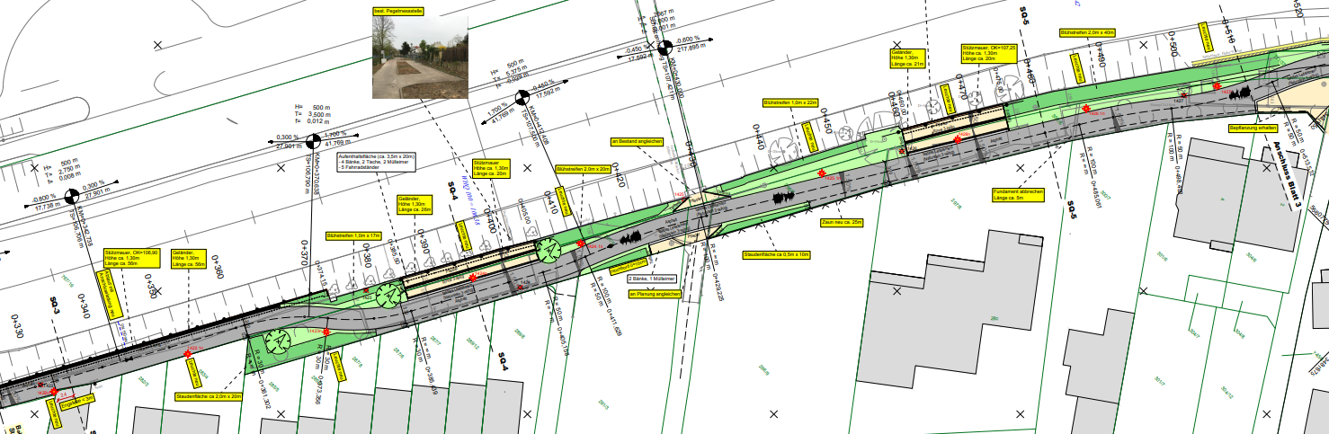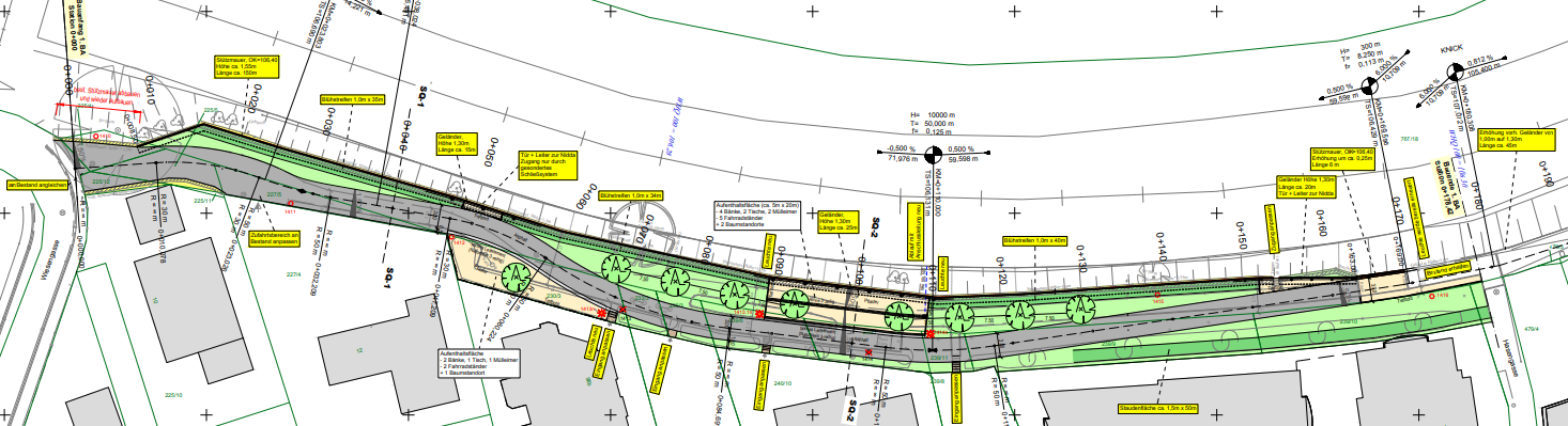 Die vorhandene Wegbreite von ca. 1,80 m bis 2,50 m war für eine gemeinsame Nutzung von Fußgäng-ern und Radfahrern nicht ausreichend. Zudem war die ursprünglich vorhan-dene Oberfläche teilweise in einem schlechten Zustand bzw. entsprach nicht mehr den heutigen Ansprüchen im Sinne der Ebenheit und Barriere-freiheit.