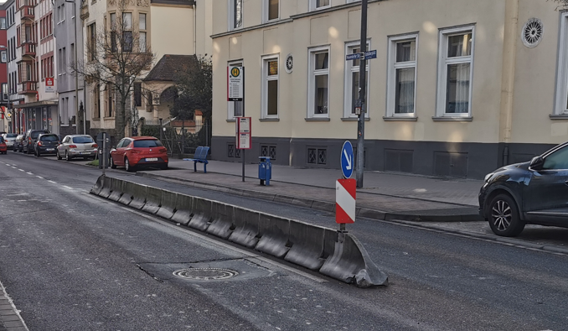 - visuelle Kontraste auf dem Boden (helle und dunkle Pflasterung)