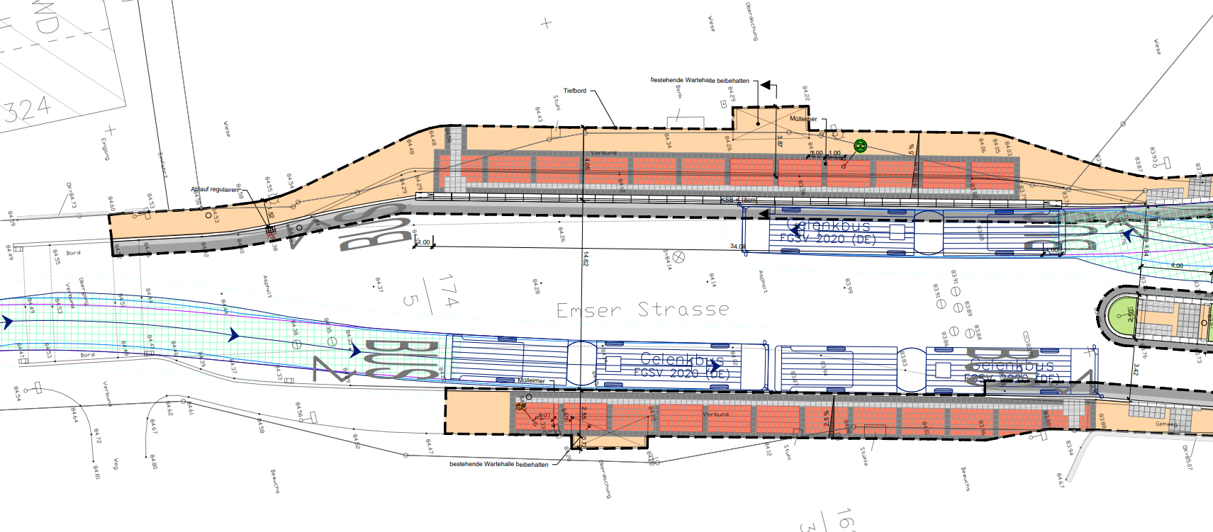 Aufgrund der umfangreichen Anzahl von 100 Haltestellen wurden diese in vier Pakete aufgeteilt und werden zu unterschiedlichen Zeitpunkten ge-plant und umgebaut. In den Jahren 2022-2024 soll der barrierefreie Aus-bau der Haltestellen planerisch und baulich umgesetzt werden.