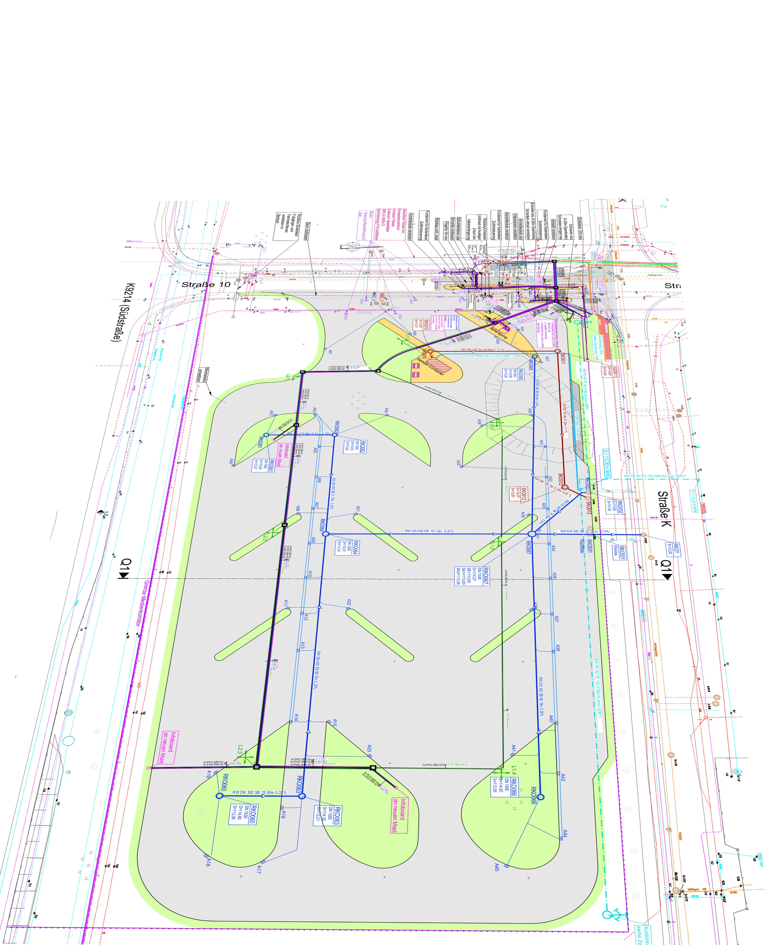 Nord-Parkplatz mit Tankstelle und Versickerungsanlagen für Regen-wasser