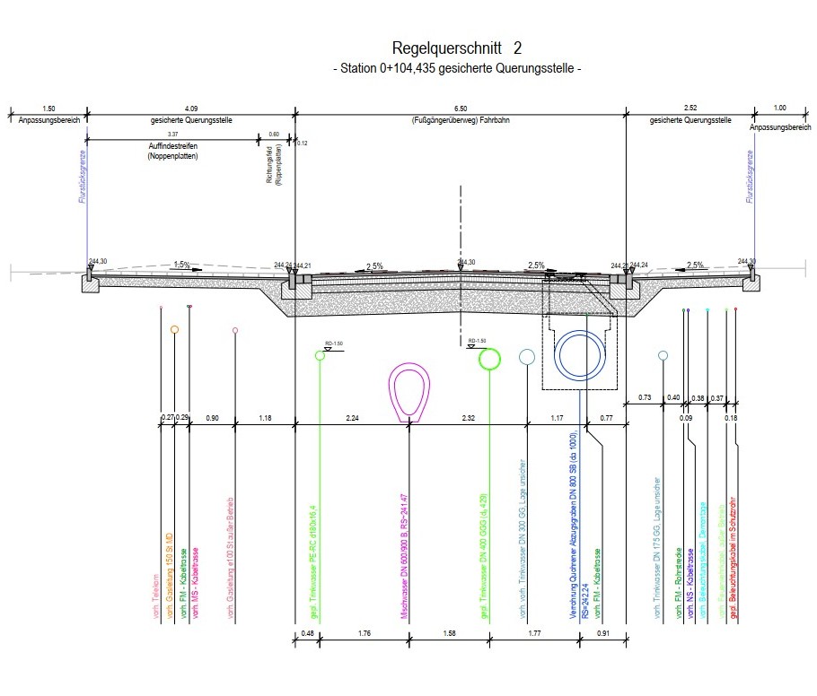 Durch SachsenEnergie und Telekom wurden die erforderlichen Planungs-leistungen für Leitungsauswechs-lungen und Kabelleerrohrtrassen se-parat beauftragt. Dabei wurden die rohrtechnische Ausrüstung für die Rohrauswechslungen Trinkwasser so-wie die zahlreichen technisch an-spruchsvollen Leitungsknotenpunkte geplant.