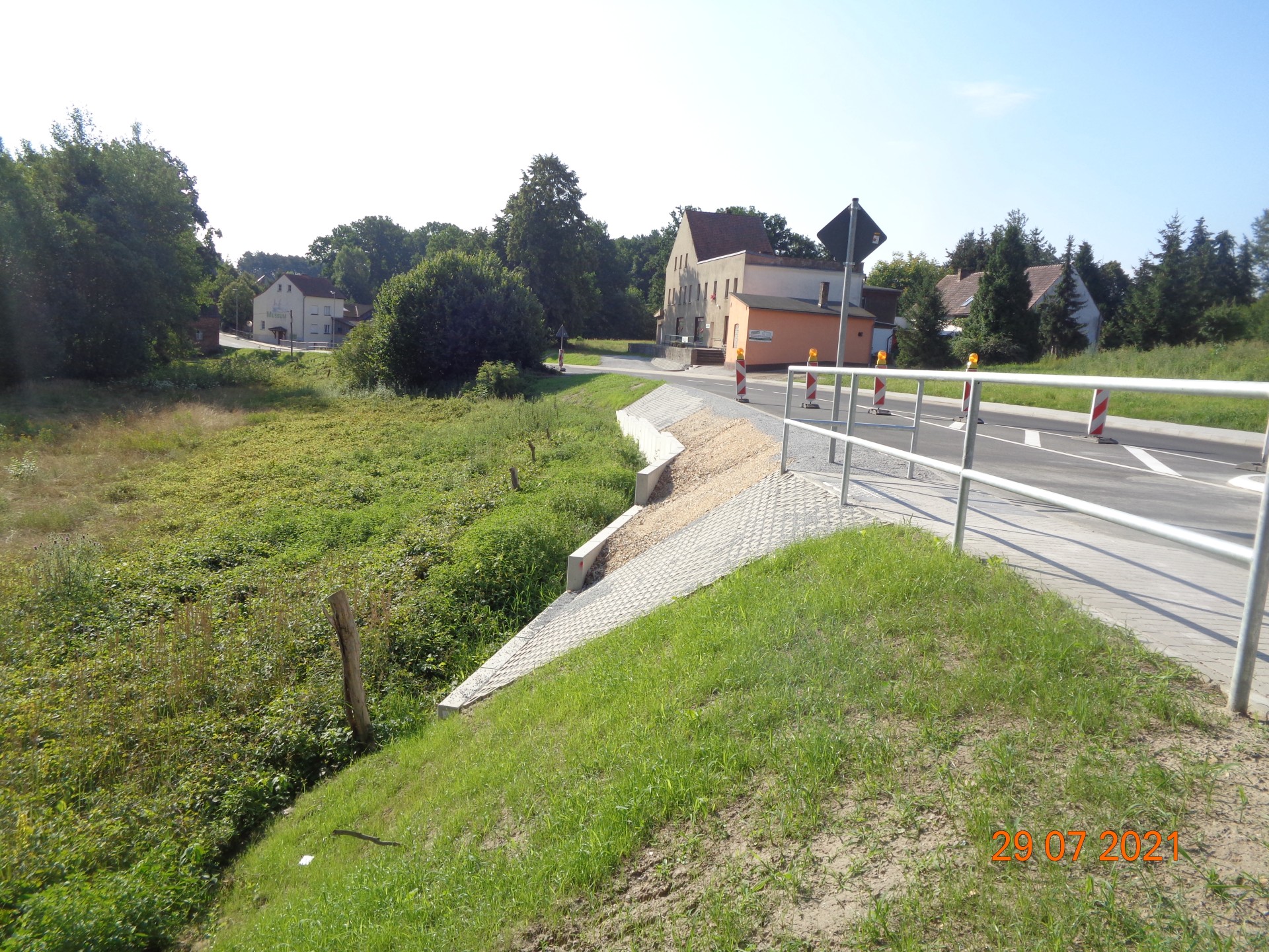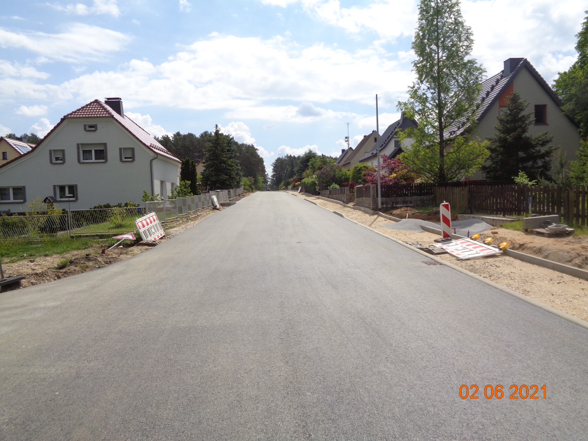 Im gesamten Baubereich der Fahr-bahn der S 127/K 8480 erfolgte ein grundhafter Straßenausbau einschl. zugehöriger Bankette, Mulden, Bus-buchten und einer durchgehenden einseitigen Gehbahn.