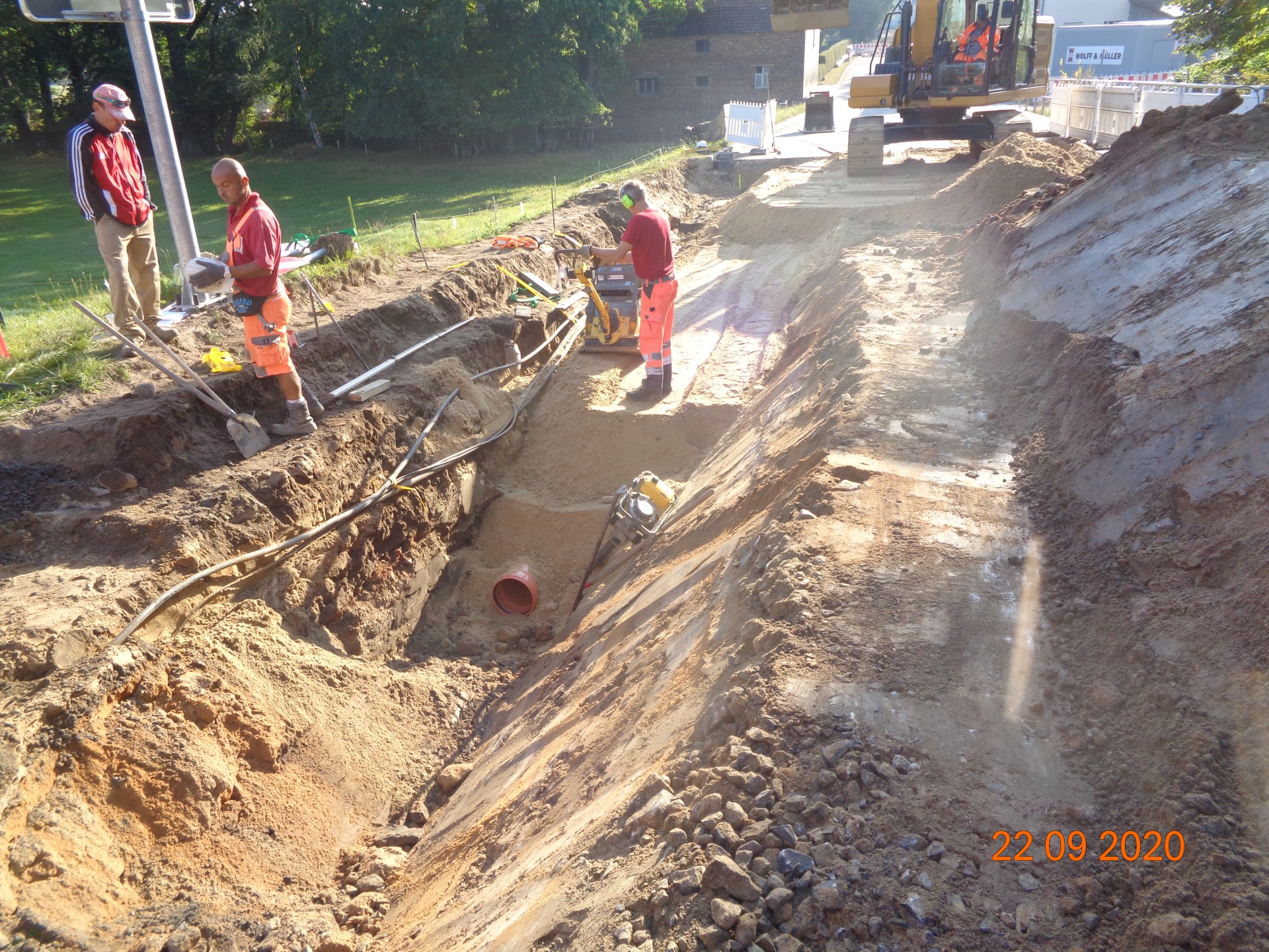 Baubegleitend wurde die Verlegung von Leerrohren (PE-HD d50) für die spätere Belegung mit Breitbandkabel durchgeführt.