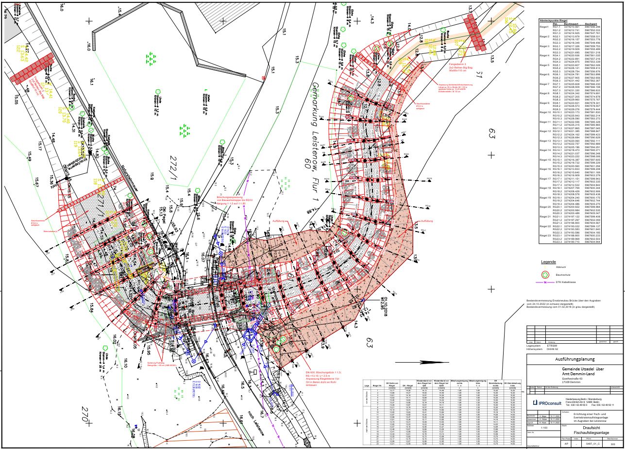 Im Ergebnis der Vorplanung wurde eine Vorzugsvariante festgelegt, die darin besteht ein Raugerinne in Bec-kenstruktur mit insgesamt 23 Riegeln im Hauptlauf des Augrabens anzuord-nen. Diese Variante sieht vor, dass 7 Riegel im Oberwasser der Brücke an-geordnet werden und die verbleiben-den 16 Riegel unterwasserseitig liegen.