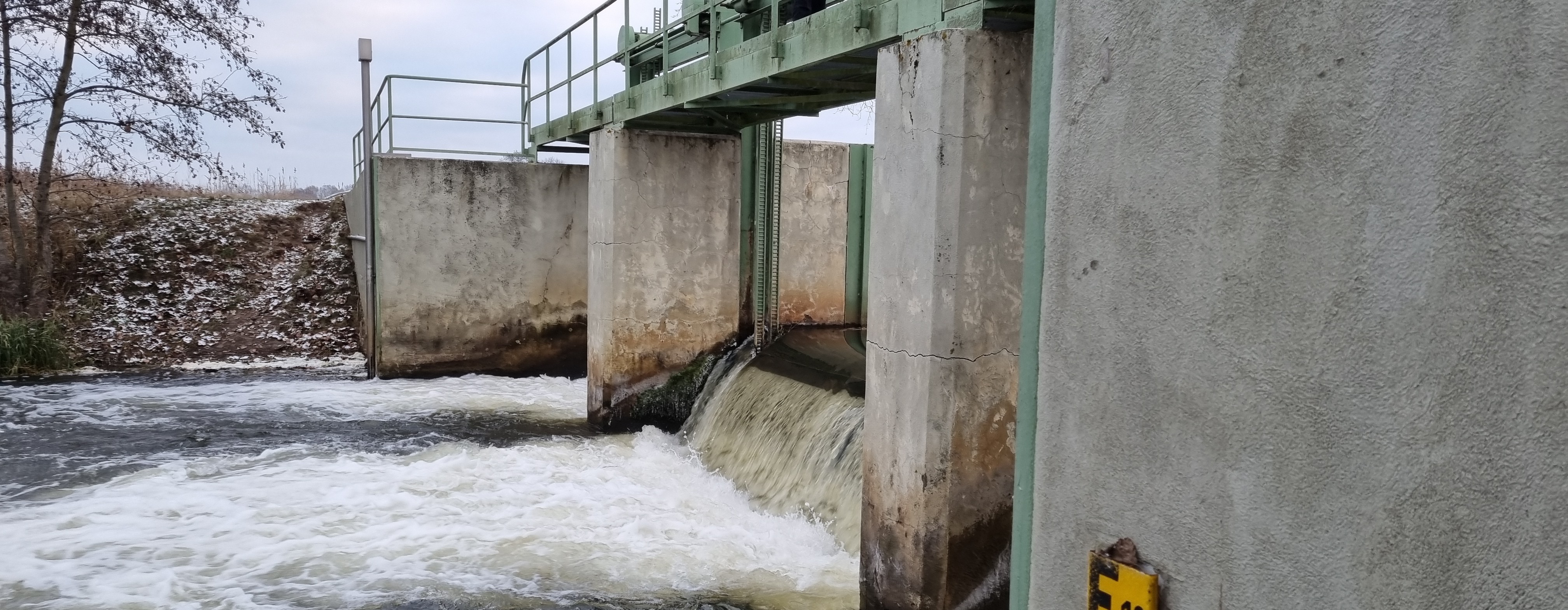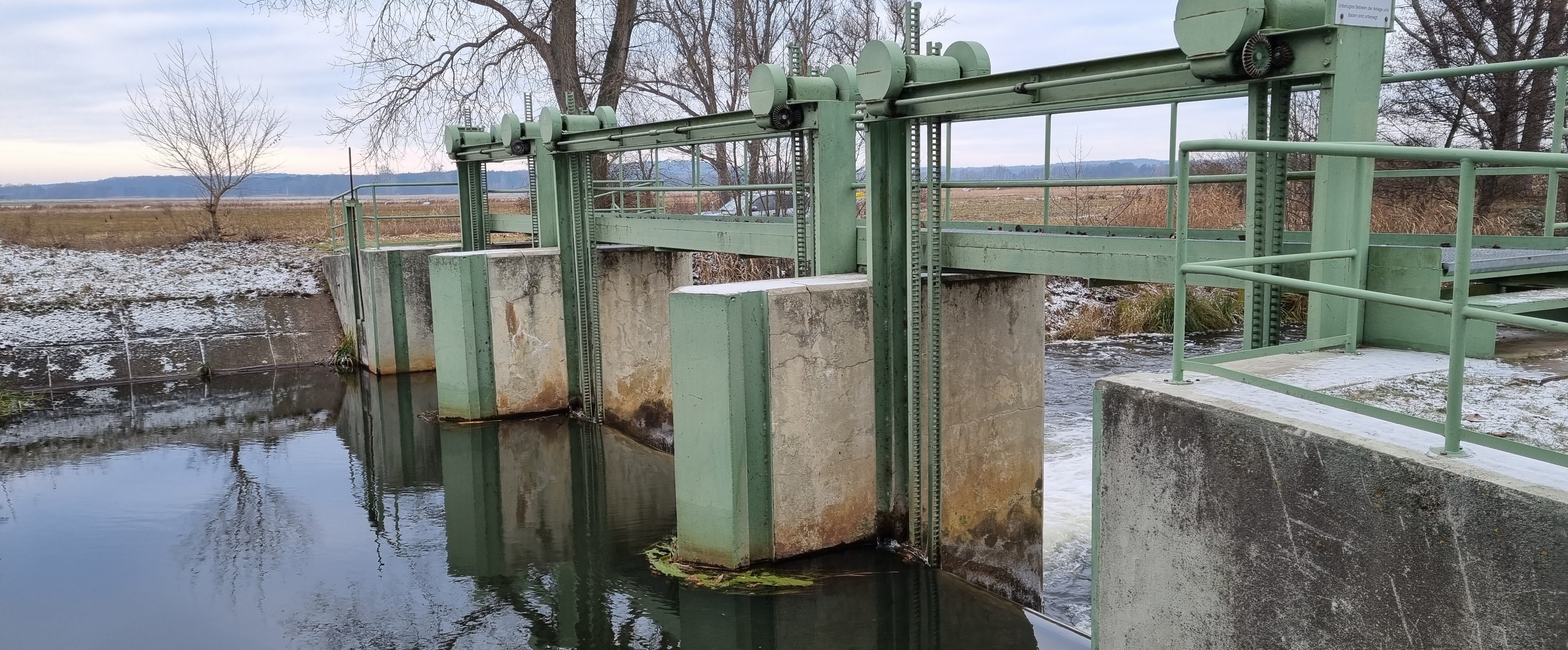Bei der Anlage handelt es sich um ein 3-Felder-Wehr mit Fischaufstiegsan-lage (FAA) und Pegelmessstation an der Nuthe. Die bauliche Beschaffen-heit der Wehranlage wurde von der Bauprüfstelle im Rahmen einer Bau-zustandsuntersuchung im Oktober 2020 mit der Bauzustandsklasse (BZK) 4 bewertet. Die Anlage weist zahlreiche Schäden auf, die die Rest-nutzungsdauer der Anlage beein-trächtigen.