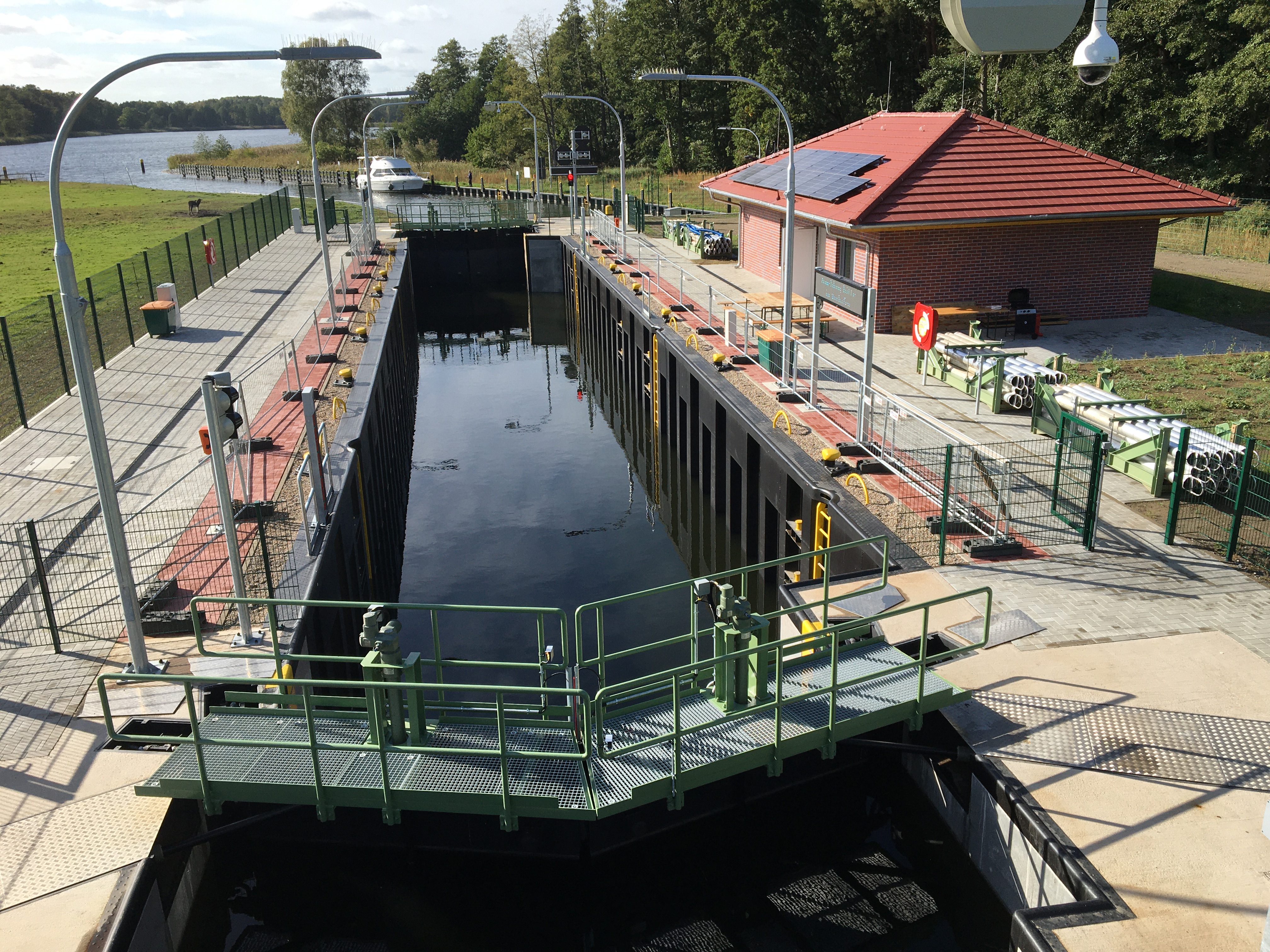 Die Schleuse Kannenburg wird im Ra-hmen des Ersatzneubaus mit elektri-schen Antrieben ausgestattet und für den automatisierten, selbstbedienten Betrieb mit Fernüberwachung ausge-rüstet.