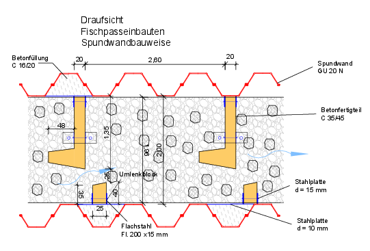 Das vorhandene alte Wehr wird anschließend teilweise zurück gebaut.