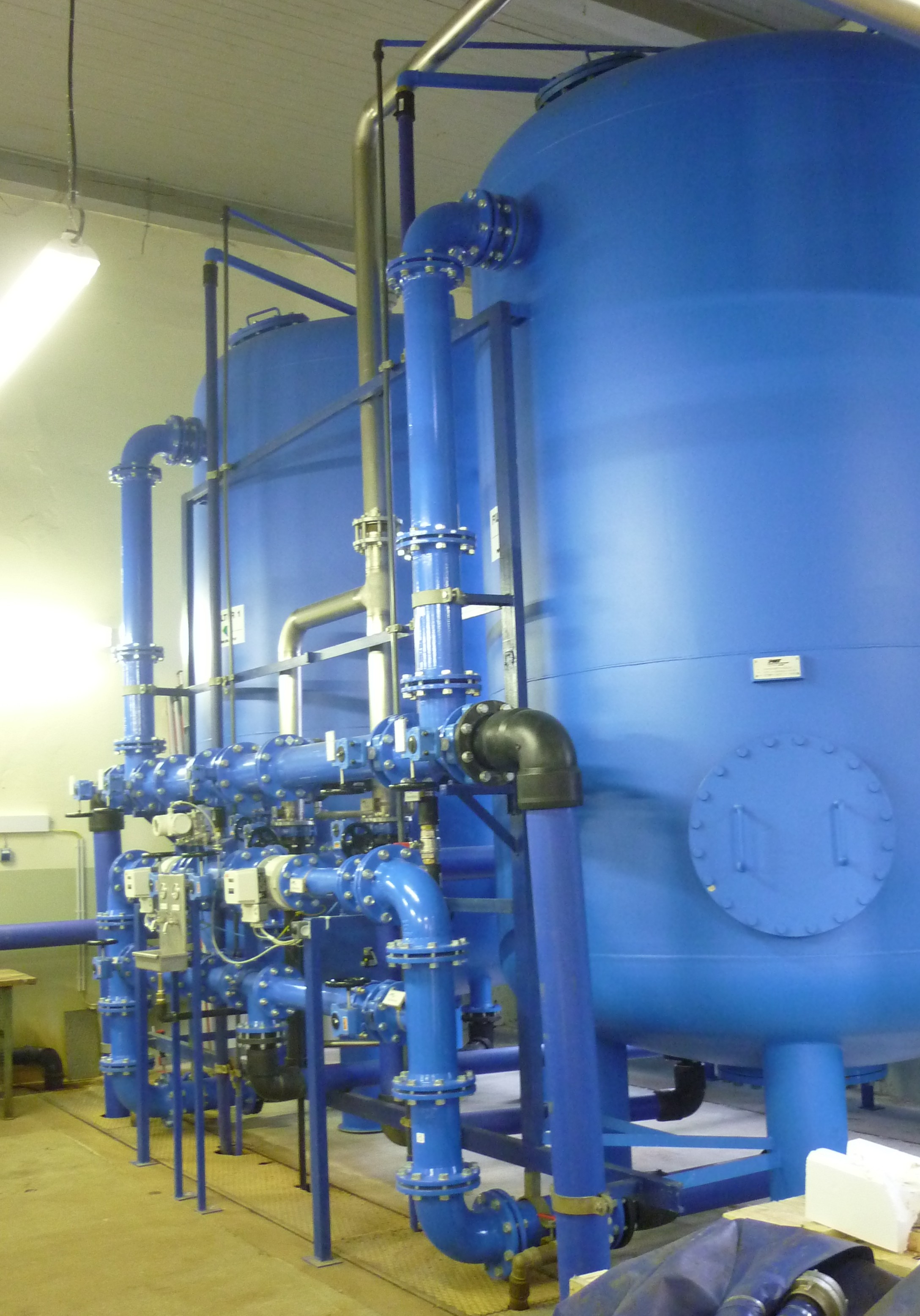 Diese Leistungen erforderten die pla-nungsseitige Berücksichtigung der Abkopplung des zu sanierenden Fil-ters von der weiter zu betreibenden Aufbereitung als Voraussetzung für die Aufrechterhaltung der Wasserver-sorgung der Anschlussnehmer über den 2. Filter, die Entleerung der Filter, Entsorgung bzw. Zwischenlagerung Filterkies, Desinfektion, Lieferung/ Neubefüllung mit Filterkies etc.