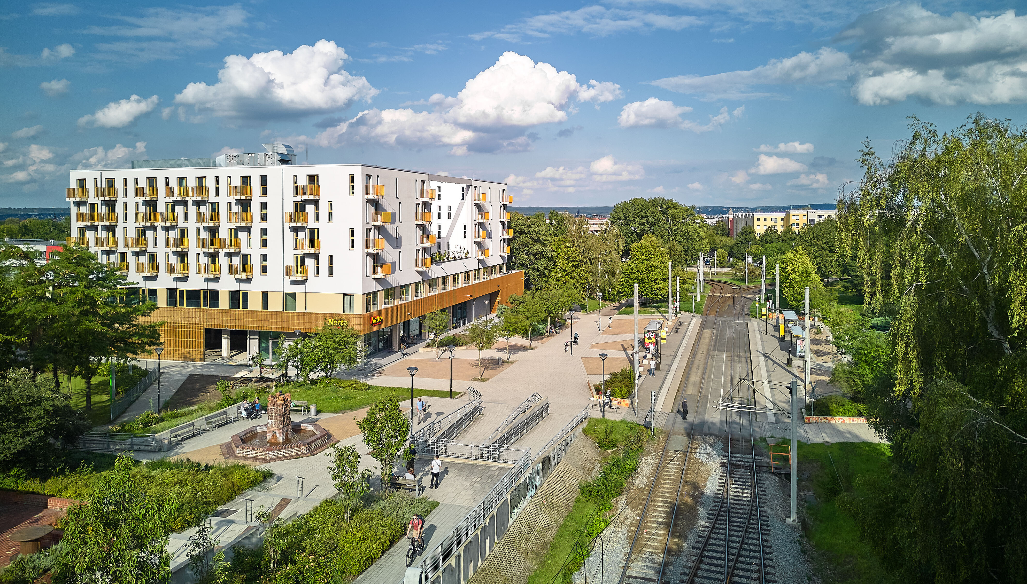 Der Standort des Bauvorhabens liegt im südwestlichen Teil von Dresden im Stadtteil Gorbitz. Auf dem Areal eines ehemaligenLebensmittelmarktes plante und realisierte IPROconsult für den Bauträger Devello einen 6-geschos-sigen Neubau mit Tiefgarage.