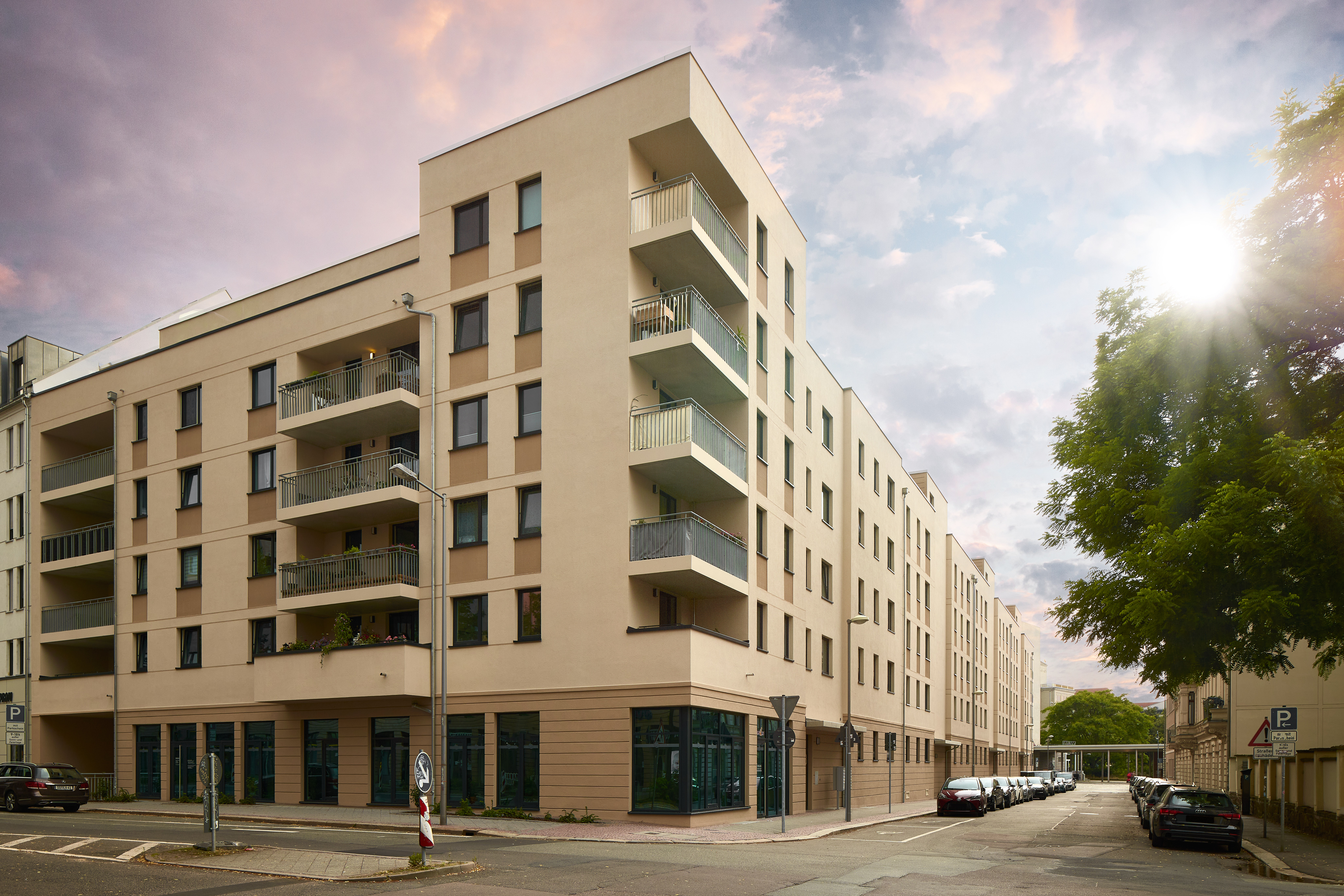 In zentraler Lage, unmittelbar östlich des Georgrings in Leipzig entstand ein neues Wohngebäude für eine ge-mischte Mieterstruktur aus Familien, Senioren und Singles. Die 152 kompakten Wohnungen bieten geeig-neten Wohnraum für Menschen in unterschiedlichen Lebensphasen. Das gesamte Gebäude wird einen Ort des Miteinanders anbieten.
